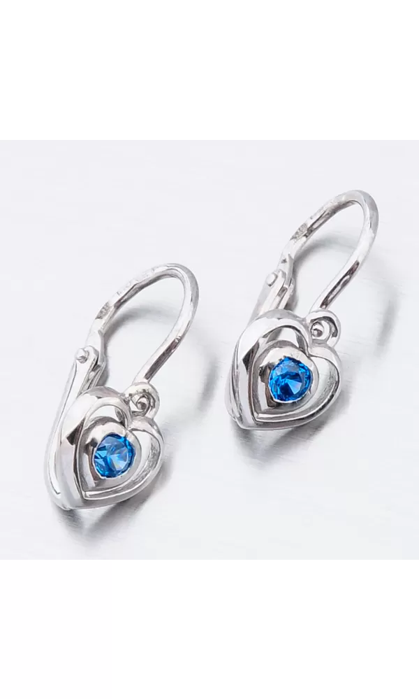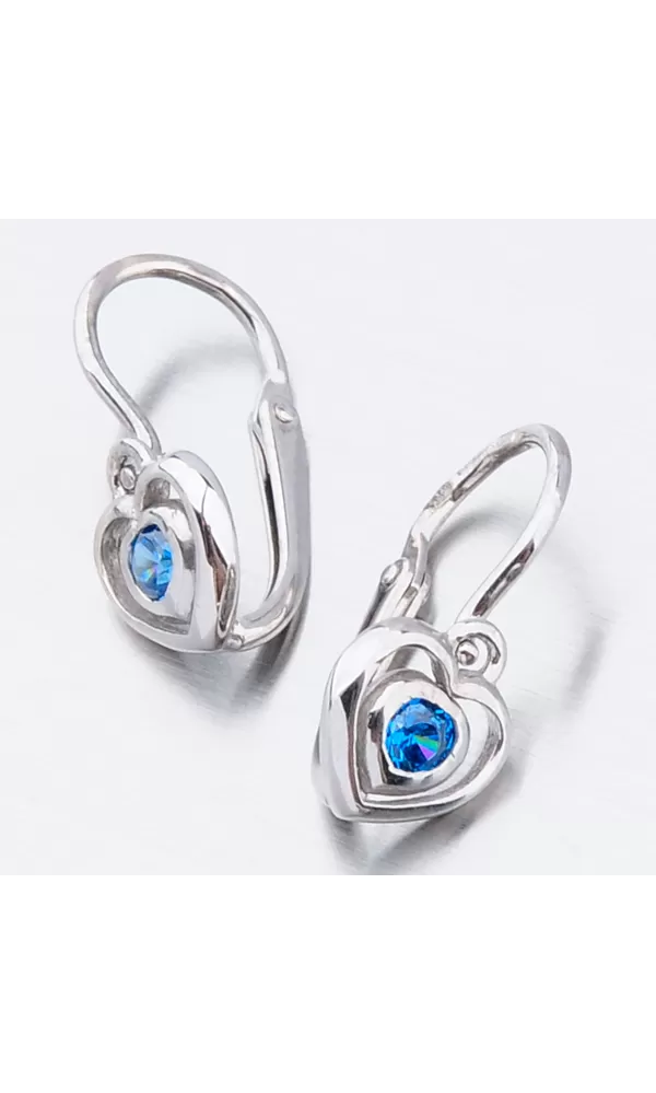Náušnice budou pravděpodobně prvním šperkem vaší malé princezny. Proto si necháváme záležet na jejich provedení o to více. Tento model dětských náušnic je navržen tak, aby co nejméně překážel. Zaoblené hrany a pevné zapínání na přední straně slibují pohodlnost a bezpečí. Náušnice jsou zdobeny srdíčkem, které se ve svém středu může pyšnit nádherným modrým zirkonem v briliantovém brusu. Tento brus zajišťuje zirkonům dokonalý odraz světla a zirkony se nádherně třpytí.