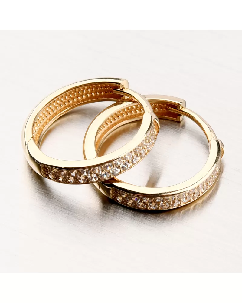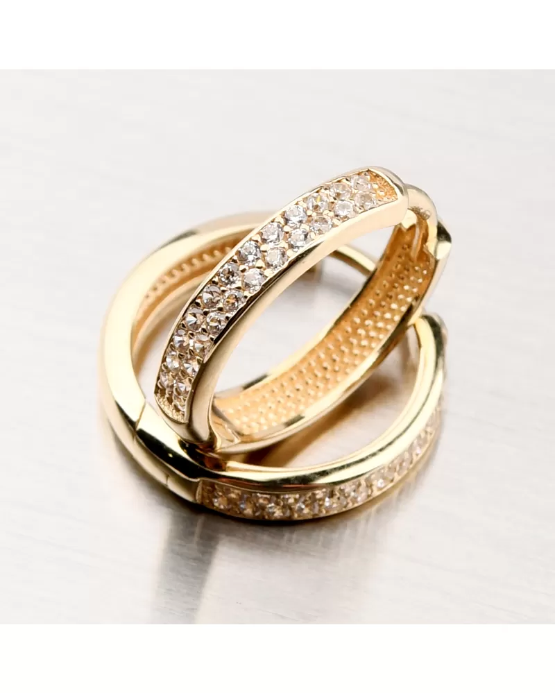 Dámske náušnice žlté zlato 585 kruhov so zirkónmi 12R-756