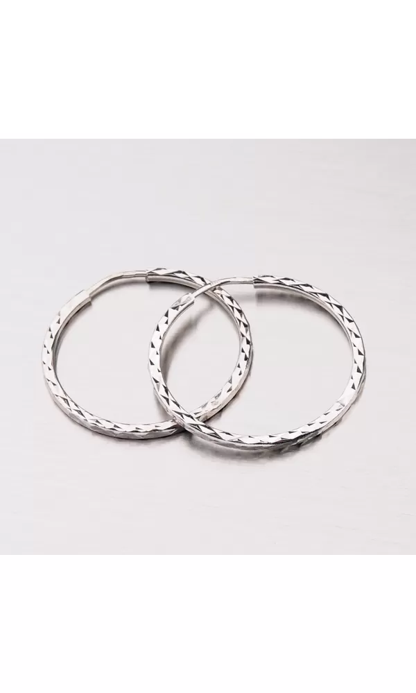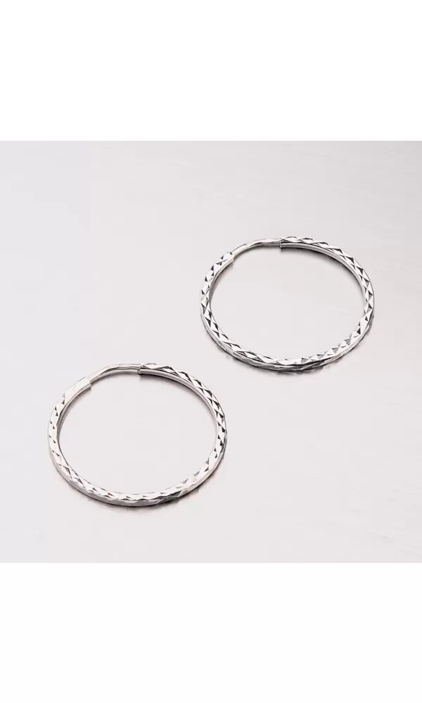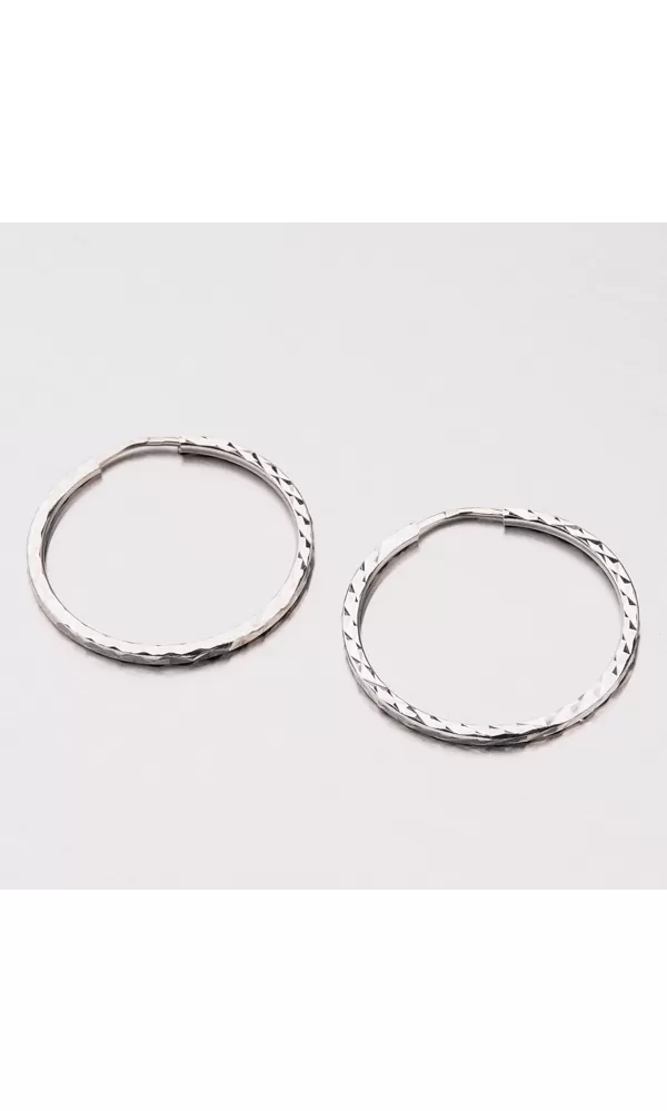 Kruhy sú stále módnym hitom. Každá žena by mala aspoň jedny vlastniť. Tieto dámske náušnice sú vyrobené z bieleho zlata s rýdzosťou 585/1000 v lesklej povrchovej úprave. Aj keď náušnice nemajú žiadne zirkóny trblietajú sa a to vďaka facetám, ktorými sú náušnice zdobené. Facety sú lesklé plôšky robené pomocou diamantového hrotu a dodávajú šperku maximálny lesk a brilanciu zo všetkých uhlov.