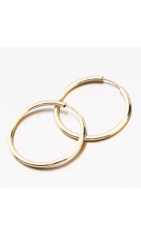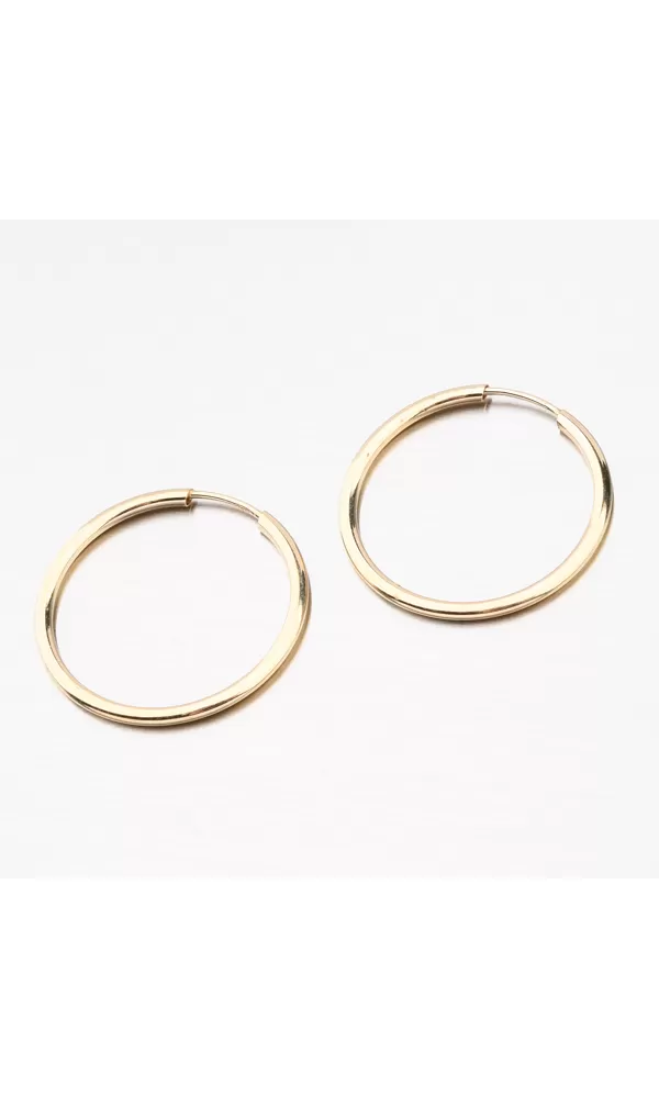 Tradičné a stále moderné dámske náušnice - kruhy sú vyrobené zo žltého štrnásťtikarátového zlata 585/1000 v lesklej povrchovej úprave.