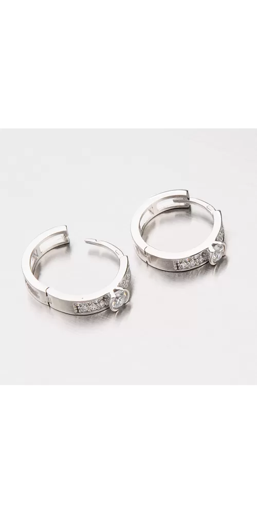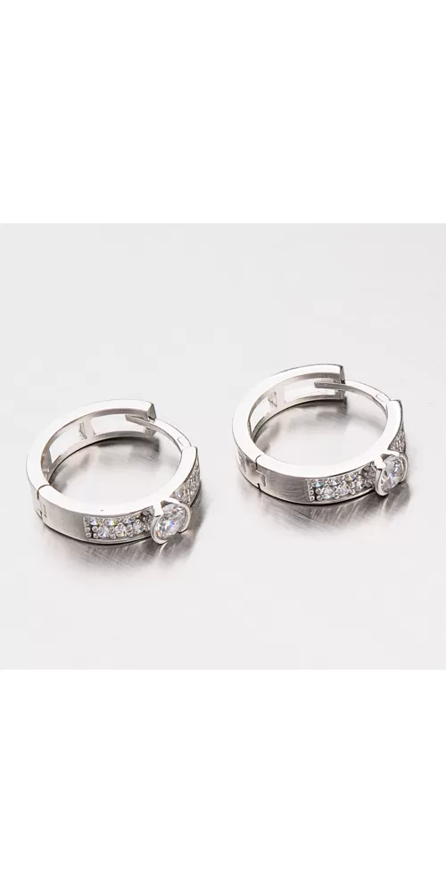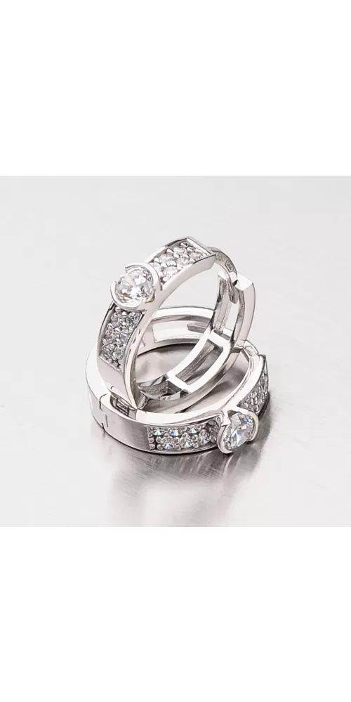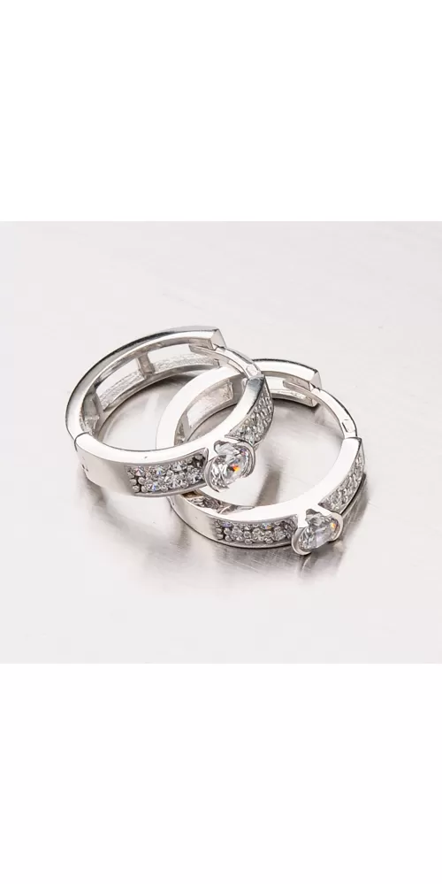 Veľmi slušivé krúžky sú vyrobené z bieleho zlata 585/1000 v lesklej povrchovej úprave. Krúžky zdobia jeden veľký zirkón, ktorého obklopujú malé zirkóny. Kamene sú brúsené v briliantovom bruse.  Zapínajú sa pomocou pántu na dve polovice. Náušnice sa skvele hodia na každodenné nosenie sú veľmi pohodlné a vždy podčiarknu váš pôvab.