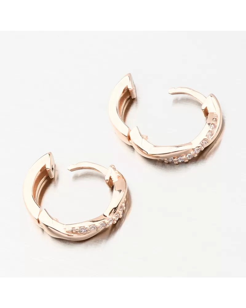 Romantické zlaté náušnice kruhy zdobené raz rad iskrivých zirkónov v prednej časti náušníc, ktoré sú vsadené do zakrúteného tvaru. Zirkóny sú briliantového brusu, ktorý zaisťuje maximálnu brilanciu vybrúsených facet, dokonale odráža svetlo a neuveriteľne žiari z každého uhla pohľadu. Tento typ náušníc patrí k nestarnúcim doplnkom, ktoré musí mať každá žena vo svojej šperkovnici.