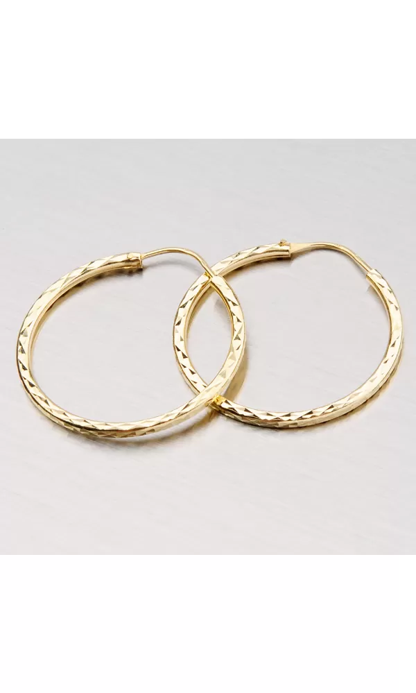 Náušnice zlato 585 gravírované kruhy 28 mm 3-20007