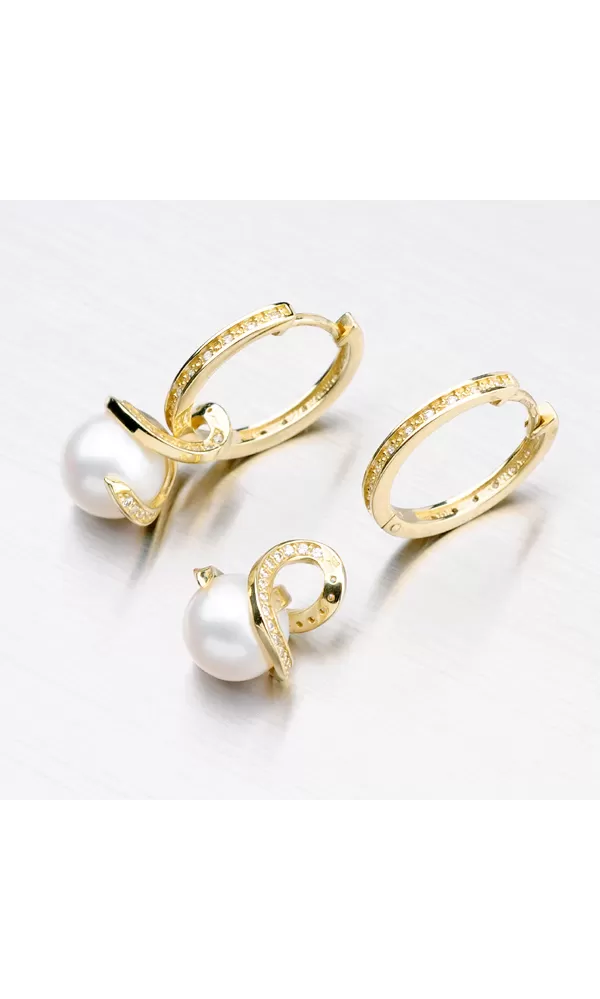 Perlové náušnice sú vyrobené zo žltého štrnásťkarátového zlata 585/1000 v lesklej povrchovej úprave. Náušnice sú navyše osadené žiarivými zirkónmi a bielou perlou. Podľa systému ohodnotenia perál je kvalita tejto sladkovodnej perly AAA – jedná sa najvyššiu kvalitu perly. Povrch má veľmi vysoký lesk a minimálne 95% povrchu perly je bez akéhokoľvek typu poškodenia. Elegantné perlové náušnice si určite obľúbite, pretože sú vhodné na každodenné nosenie aj do spoločnosti aj vďaka tomu, že je možné perlový prívesok sňať a nosiť iba kruhy so zirkónmi. Perlové šperky sú symbolom urodzenosti a elegancie.