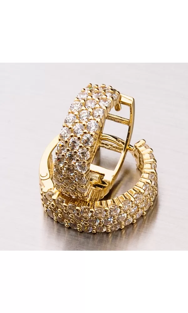 Ďalší z mnohých veľmi úspešných modelov, z ktorých bude nadšená nejedna žena. Tieto náušnice sú zdobené zirkónmi v briliantovom bruse, ktorými sú bohato zdobené. Krásne dámske náušnice vyrobené zo žltého zlata rýdzosti 585/1000 s lesklou povrchovou úpravou. Náušnice sú nielen krásne, ale aj praktické a veľmi pohodlné. Zažiarite v nich na spoločenských udalostiach a sú vhodné aj na každodenné nosenie. Sú veľmi pohodlné a ľahké.