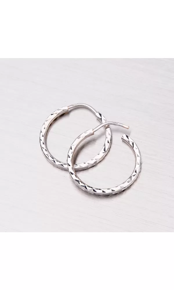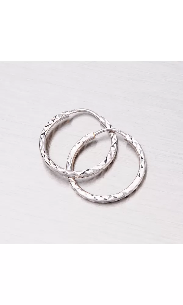 Kruhy dámskych kruhov sú vyrobené z bielych štrnástich -karátových zlatých 585/1000. Náušnice sú zdobené diamantovým gravírovaním, kde diamant špičky rybárskeho nástroja zaisťuje neuveriteľne vysoký lesk.