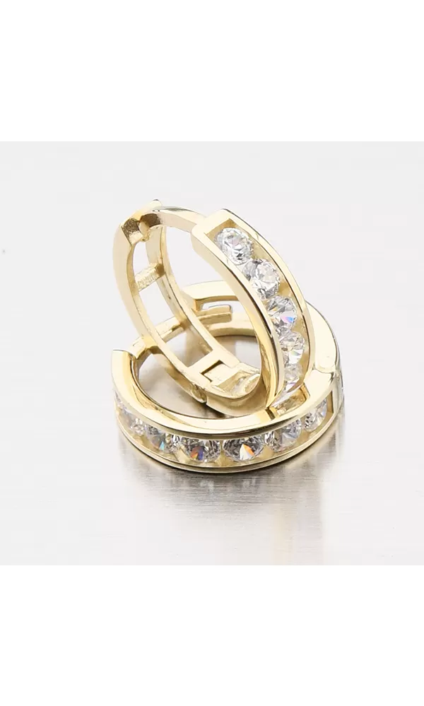 Detské náušnice žlté zlato krúžky 585 so zirkónmi 52GZ-3345ZBB