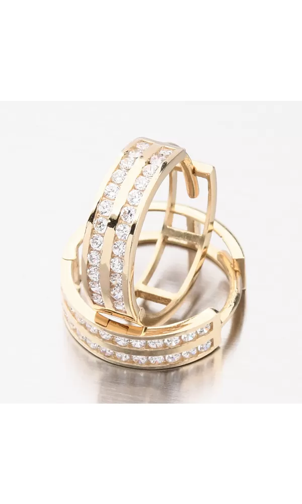 Elegantní kruhy zvýrazněné o zářivé zirkony si zamilujete. Kruhy jsou velice praktické a také pohodlné a to je přesně to, co každá žena potřebuje. Tento model zdobí přední strana precizně osazená zirkony v briliantovém brusu a to rovnou ve dvou řadách.