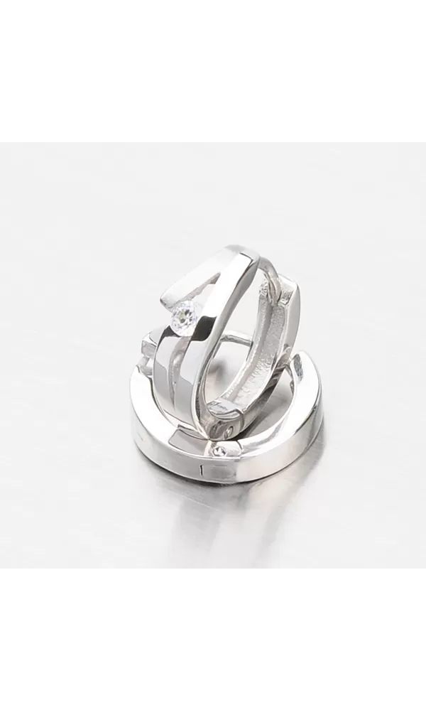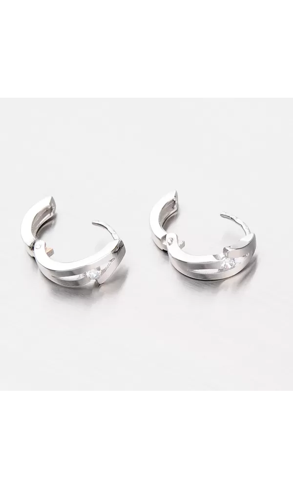 Elegantné dámske náušnice - krúžky s bielym zirkónom sú vyrobené z bieleho štrnástich karátového zlata 585/1000 v kombinácii lesklej a matnej povrchovej úpravy.