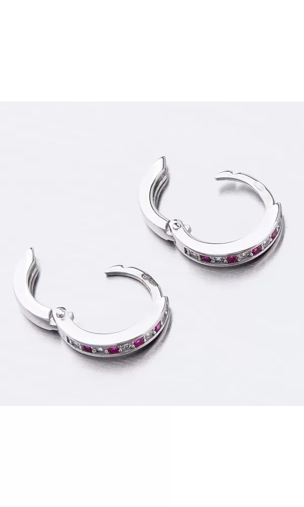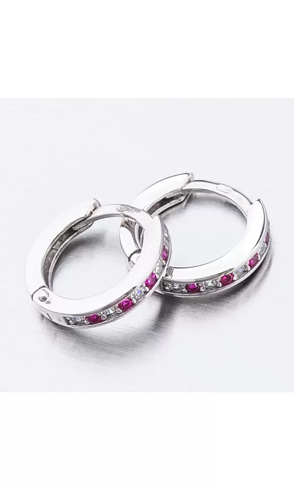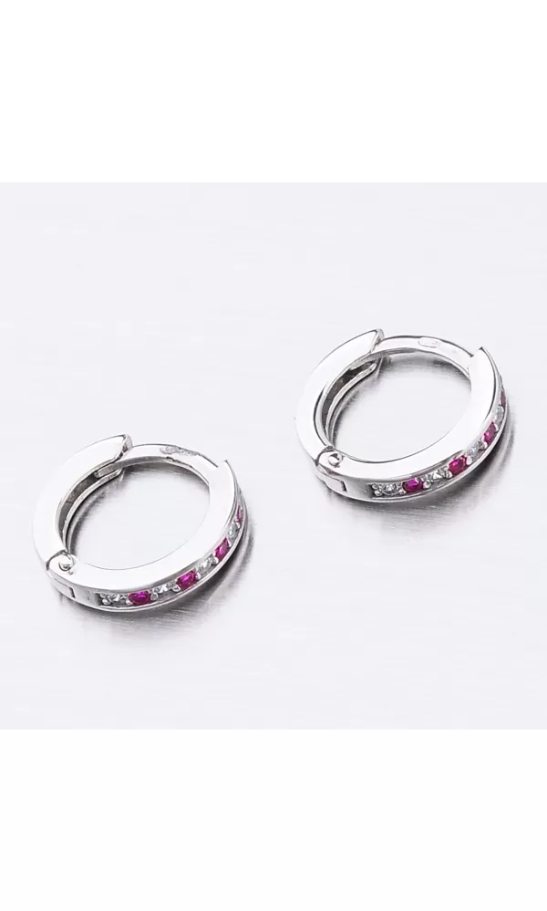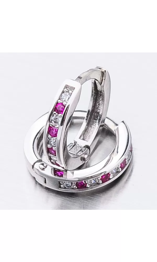 Něžné náušnice kroužky s pevnou konstrukcí si zamilujete vy i vaše malá parádnice. Kroužky jsou velice praktické a velmi pohodlné a to je přesně to co potřebujete. Tento model zdobí přední strana precizně osázená zirkony v briliantovém brusu. Zirkony se pravidelně střídají v červené a bílé barvě. Zadní strana je hladká a pokud vaší princeznu zirkony omrzí dají se kroužky nosit i zadní stranou dopředu.