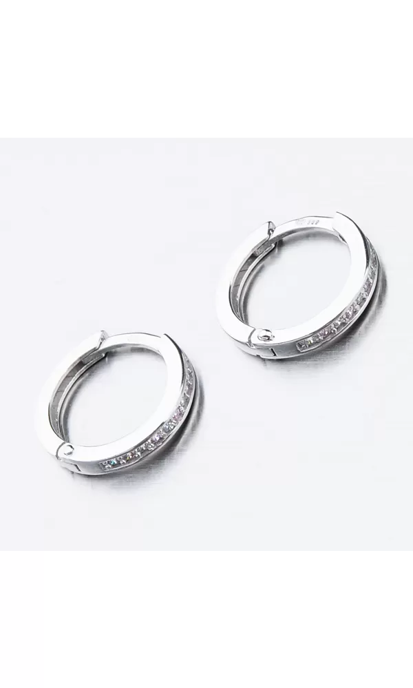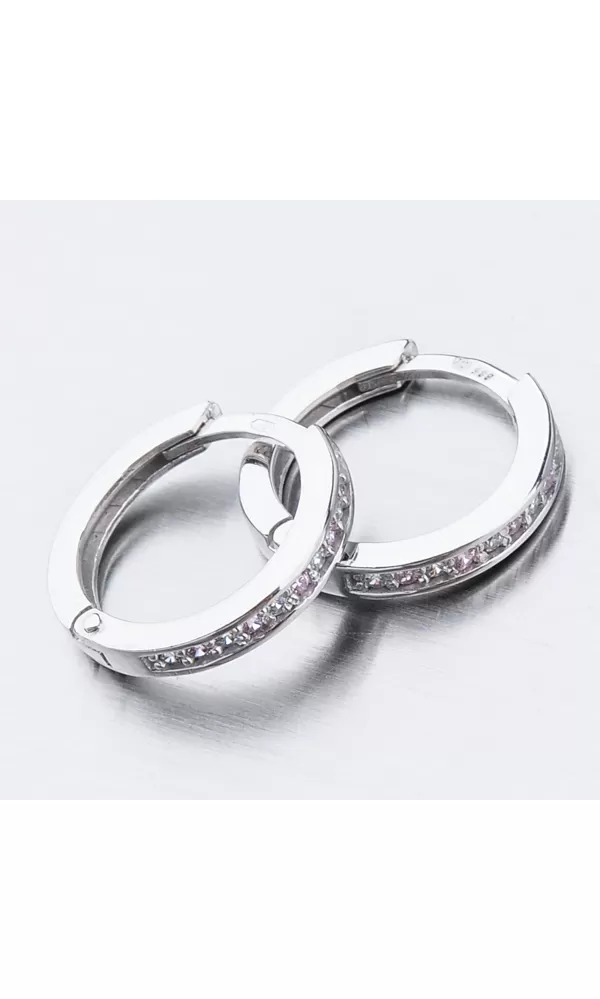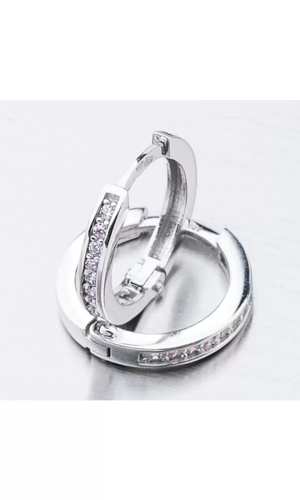 Něžné náušnice kroužky s pevnou konstrukcí si zamilujete vy i vaše malá parádnice. Kroužky jsou velice praktické a velmi pohodlné a to je přesně to co potřebujete. Tento model zdobí přední strana precizně osázená zirkony v briliantovém brusu. Zirkony jsou v bílé barvě. Zadní strana je hladká a pokud vaší princeznu zirkony omrzí dají se kroužky nosit i zadní stranou dopředu.