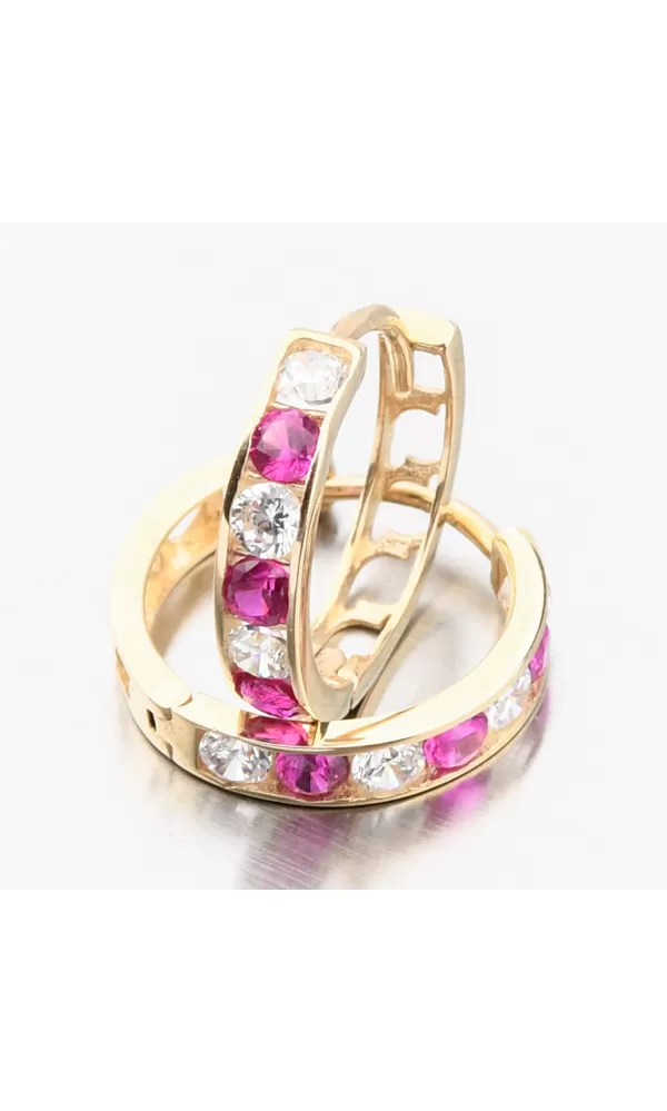 Něžné náušnice kroužky s pevnou konstrukcí si zamilujete Vy i Vaše malá parádnice. Kroužky jsou velice praktické a velmi pohodlné a to je přesně to, co potřebujete. Tento model zdobí přední strana precizně osazená červenými a bílými zirkony v briliantovém brusu. Tento brus zajišťuje maximální brilanci vybroušených facet, dokonale odráží světlo a neuvěřitelně září z každého úhlu pohledu. Červená barva sedne spoustě žen a to z důvodu, že tuto barvu můžete sladit jak s oblečením, tak i s doplňky. Červená barvě je barvou vášně, energie a vitality.