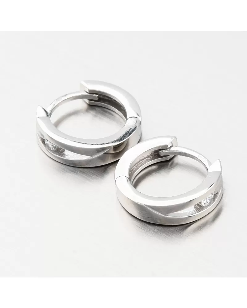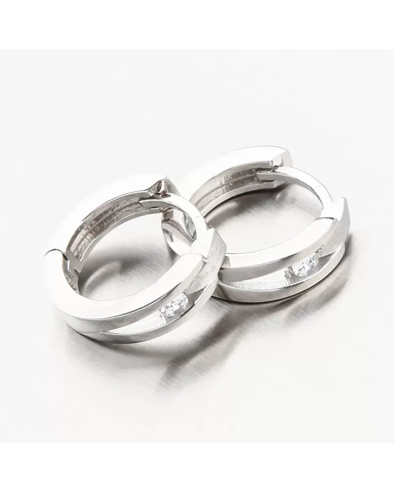 Náušnice sú vyrobené z bieleho štrnásťkarátového zlata 585/1000 v lesklej a matnej povrchovej úprave. Tento šperk bol skontrolovaný puncovým úradom, ktorý overil jeho kvalitu a označil štátnym puncom pre danú rýdzosť.