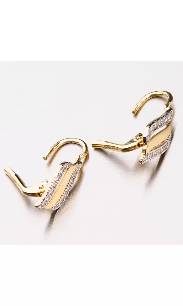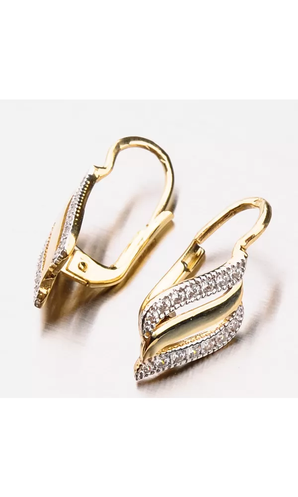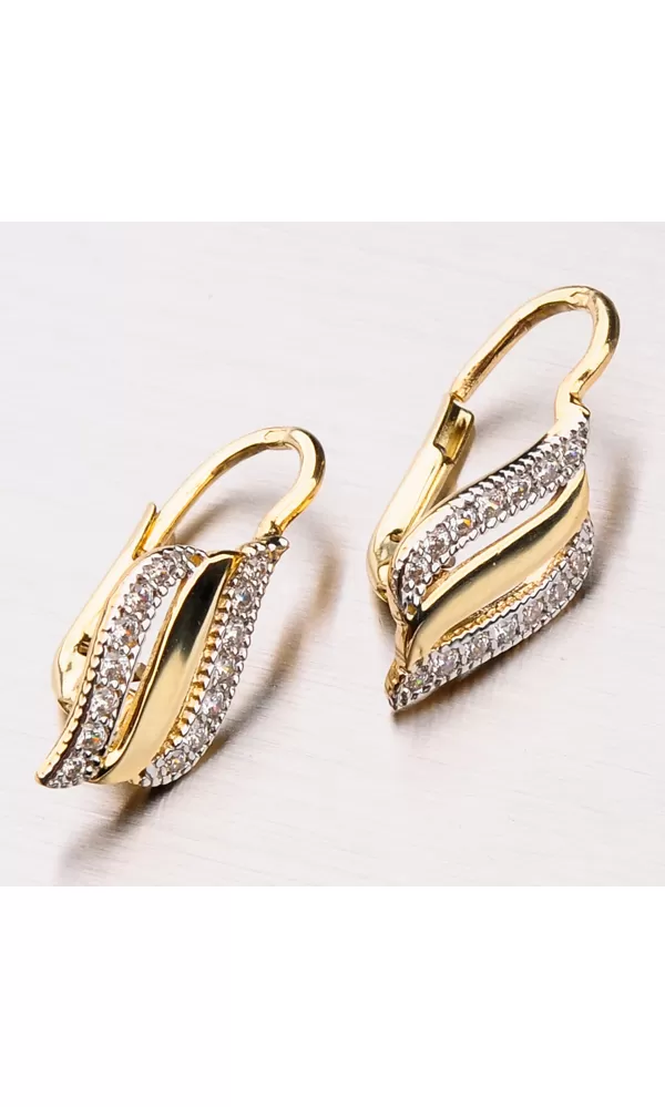 Bohato zdobené náušnice vás budú zdobiť na každom vašom kroku. Sú neprehliadnuteľné vďaka žiarivým zirkónom v briliantovom bruse. Dámske náušnice sú vyrobené zo žltého štrnásťkarátového zlata 585/1000 v lesklej povrchovej úprave s klasickým zapínaním na klapky.