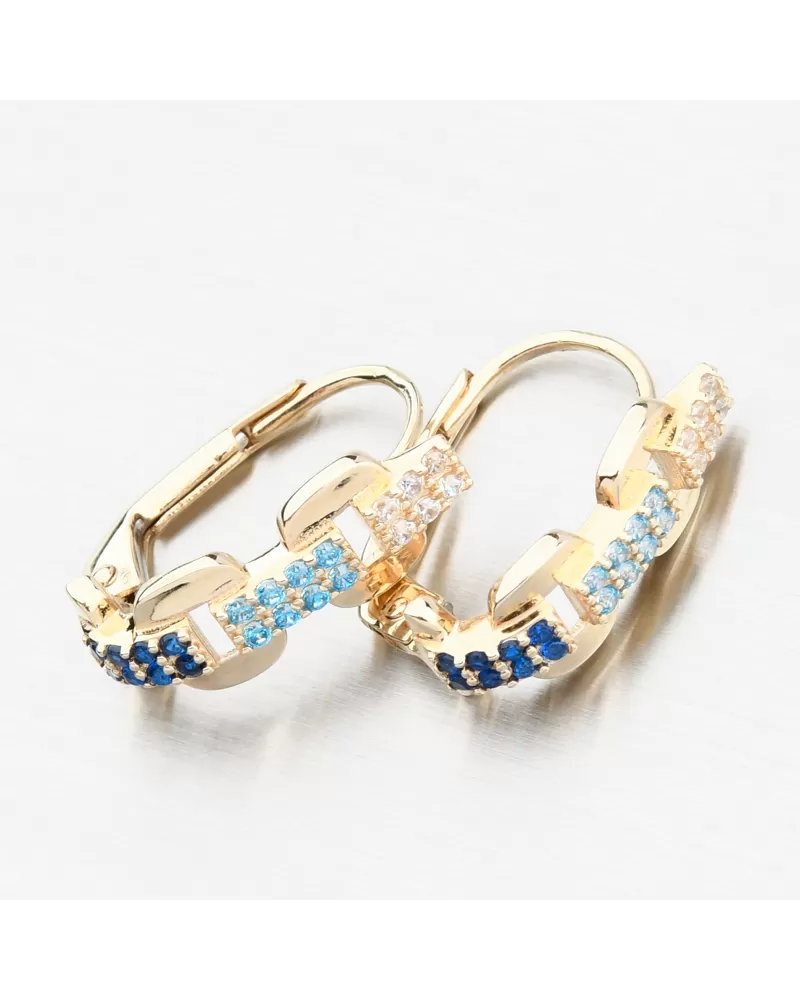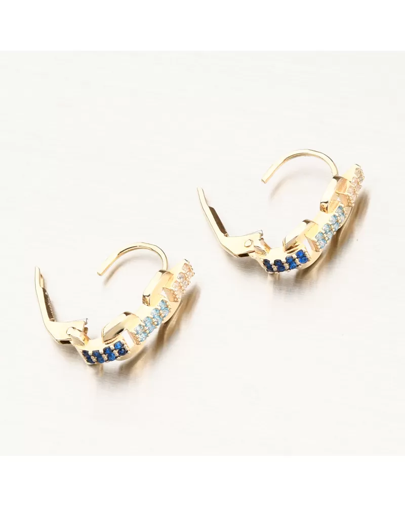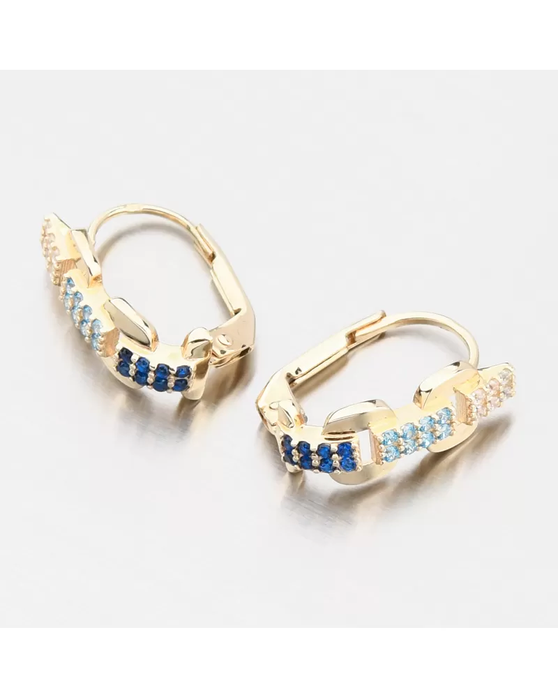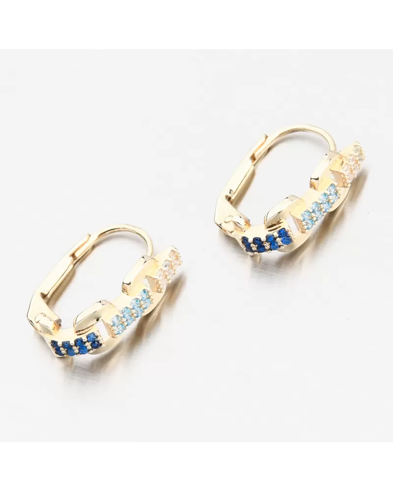 Tieto zlaté náušnice sú nádhernou kombináciou hravých pastelových odtieňov a nadčasovej elegancie. Biele, svetlomodré a tmavomodré tóny sa prelínajú v línii drobných zirkónov, ktoré dodávajú kúsku rafinovanú ženskosť. Zirkóny sú briliantovo vybrúsené, čo zaisťuje maximálnu brilanciu brúsených faziet, dokonale odráža svetlo a neuveriteľne sa leskne z každého pohľadu. Vďaka precíznemu spracovaniu a bezpečnému zapínaniu pôsobia náušnice luxusne, no zároveň ľahko a subtílne - ideálne na každodenné nosenie aj špeciálne príležitosti.