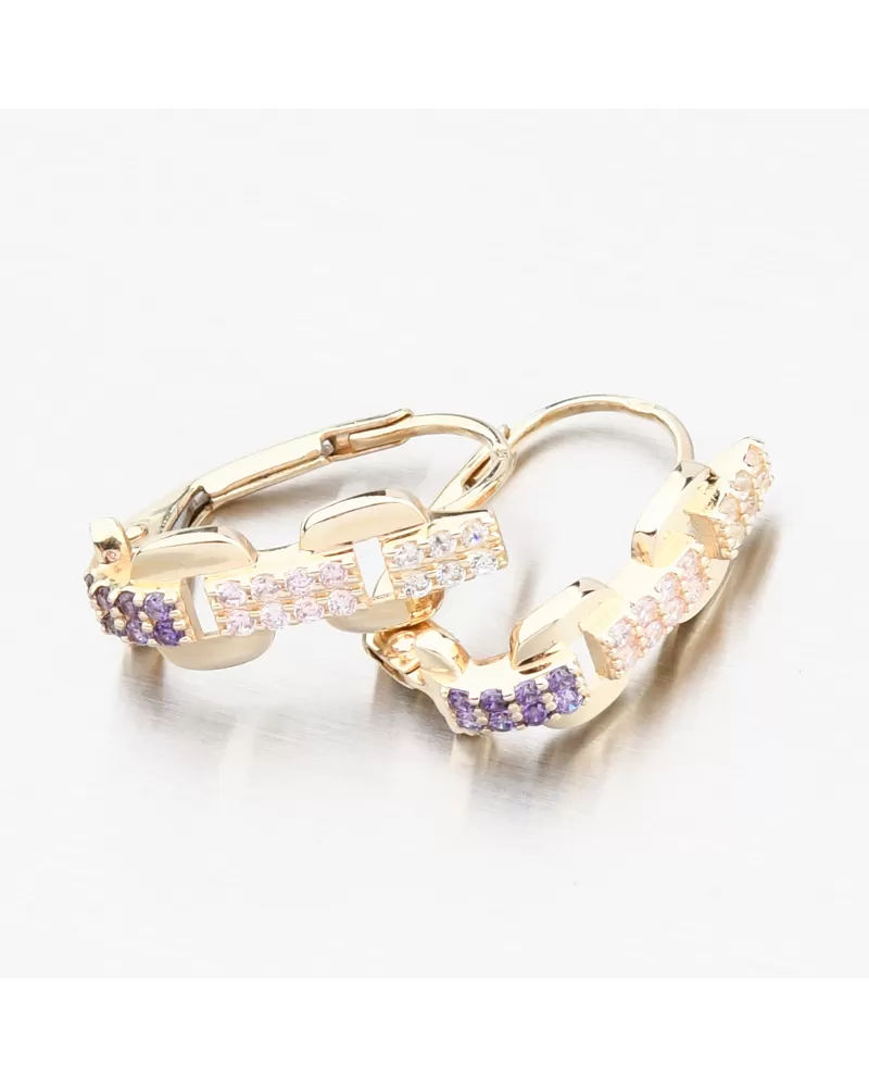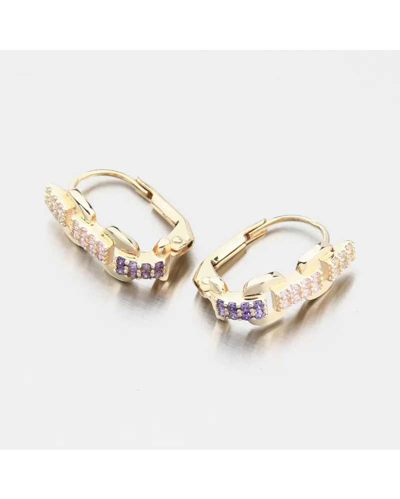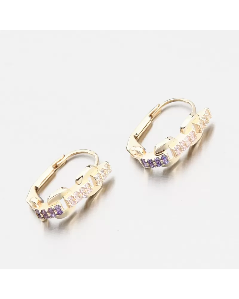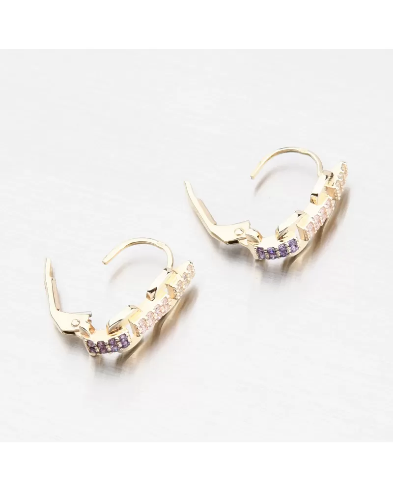 Tieto zlaté náušnice sú nádhernou kombináciou hravých pastelových odtieňov a nadčasovej elegancie. V línii drobných zirkónov sa prelínajú biele, jemné fialové a svetloružové tóny, ktoré dodávajú kúsku rafinovanú ženskosť. Zirkóny sú briliantovo vybrúsené, čo zaisťuje maximálnu brilanciu brúsených faziet, dokonale odráža svetlo a neuveriteľne sa leskne z každého pohľadu. Vďaka precíznemu spracovaniu a bezpečnému zapínaniu pôsobia náušnice luxusne, no zároveň ľahko a subtílne - ideálne na každodenné nosenie aj špeciálne príležitosti.