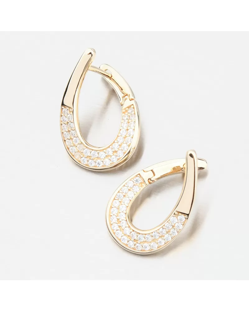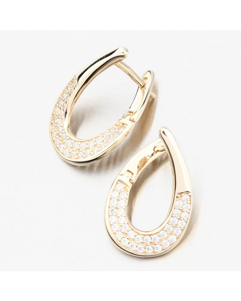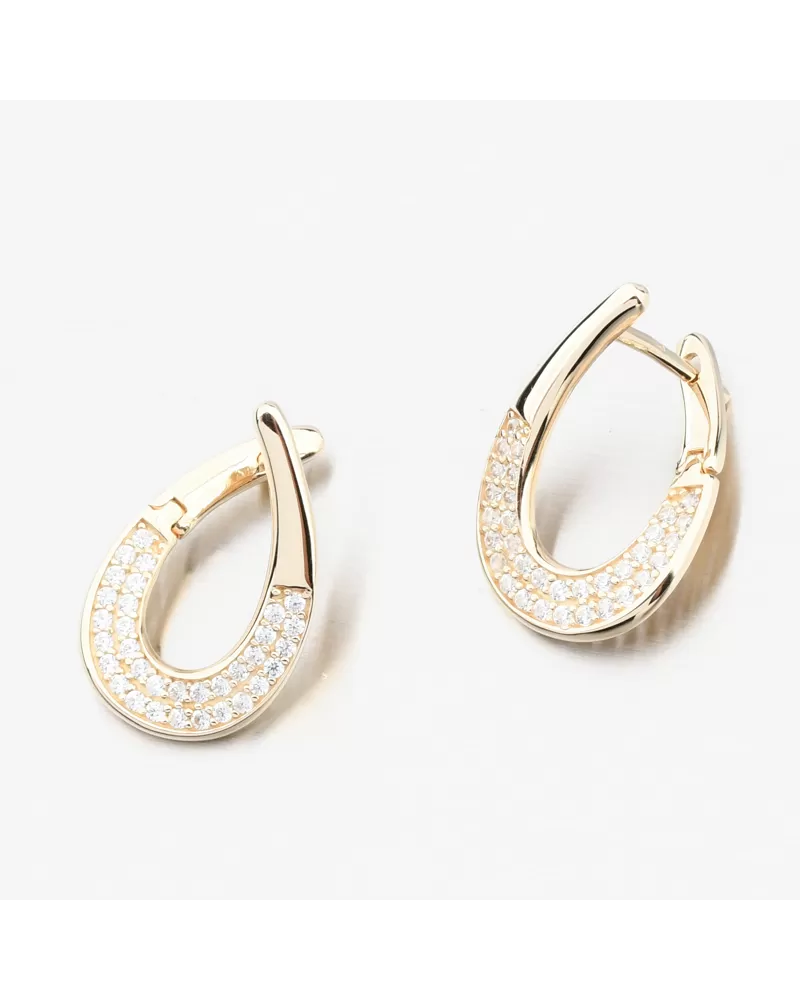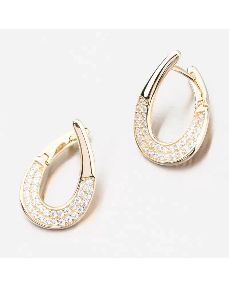 Dajte svojmu štýlu nádych luxusu s týmito nádhernými zlatými náušnicami v modernom tvare slzy. Lesklé žlté zlato dopĺňajú dva rady precízne vybrúsených čírych zirkónov, ktoré sa na svetle krásne lesknú a pútajú pozornosť. Tieto náušnice sú ideálnou voľbou pre ženy, ktoré milujú kombináciu jemnosti, lesku a sofistikovaného dizajnu. Ideálne ako darček k výročiu, narodeninám alebo len tak pre radosť.