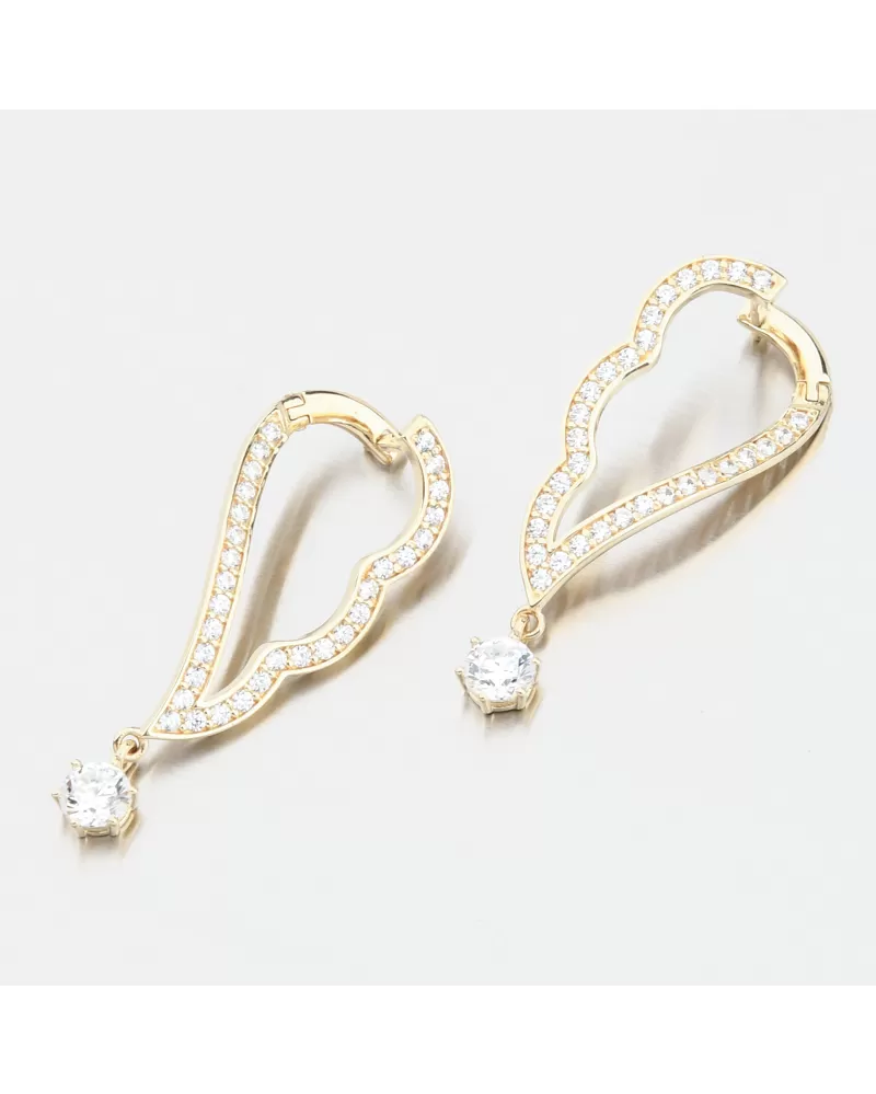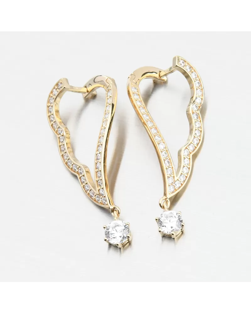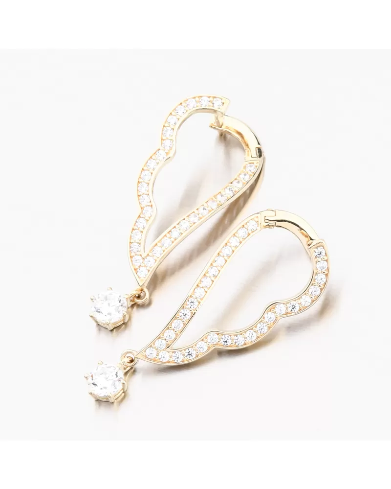 Dajte svojmu štýlu nádych luxusu s týmito nádhernými zlatými náušnicami v modernom visiacom tvare. Lesklé žlté zlato je lemované drobučkými trblietavými zirkónmi, ktoré sa na svetle krásne lesknú a pútajú pozornosť. V spodnej časti náušnice visí výrazný 5 mm zirkón. Tieto náušnice sú ideálnou voľbou pre ženy, ktoré milujú kombináciu jemnosti, lesku a sofistikovaného dizajnu. Ideálne ako darček k výročiu, narodeninám alebo len tak pre radosť.
