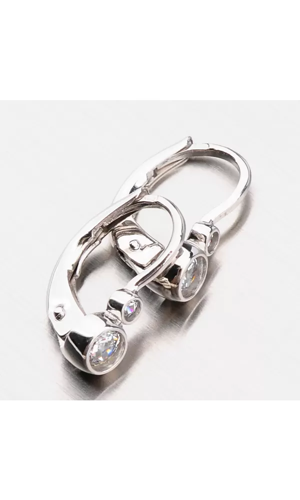 Detské náušnice sú vyrobené z bieleho štrnáctikarátového zlata 585/1000 v lesklej povrchovej úprave. Náušnice sú zdobené dvoma zirkónmi vsadené nad sebou. . Náušnice sa zapínajú na klapku, ktorá je pohodlná a bezpečná. Náušnice sú vhodné pre deti 5 až 10 rokov.