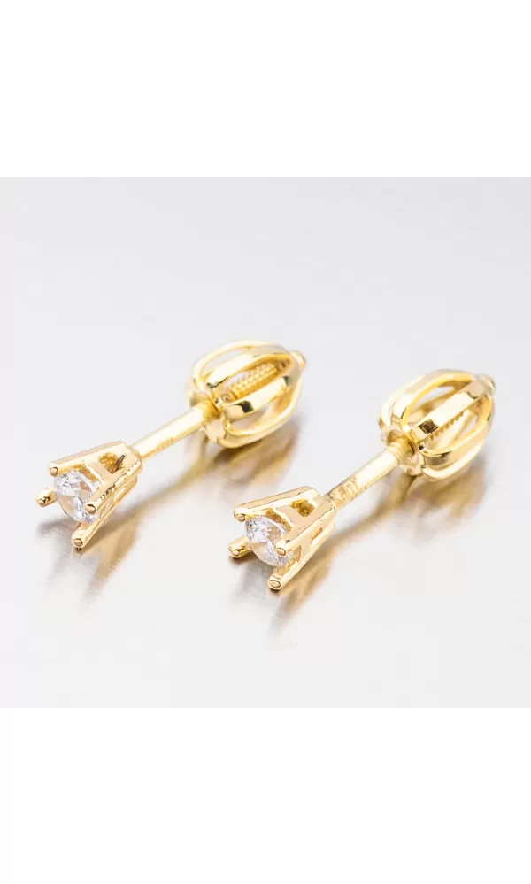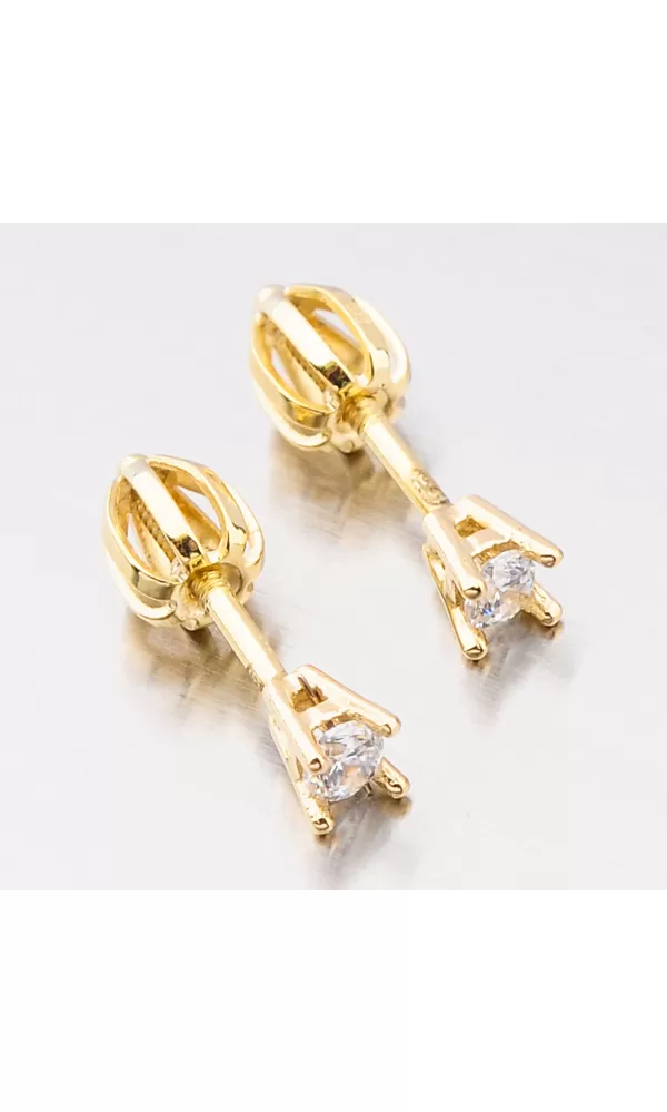 Ozdobte se decentním šperkem, který vás zjemní. Tyto náušnice pecky oplývají neuvěřitelné zářivým zirkonem v briliantovém brusu. Zirkon je precizně vsazen do zlata a dokonale odráží světlo. Náušnice se zapínají na šroubek.