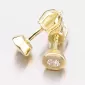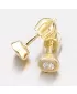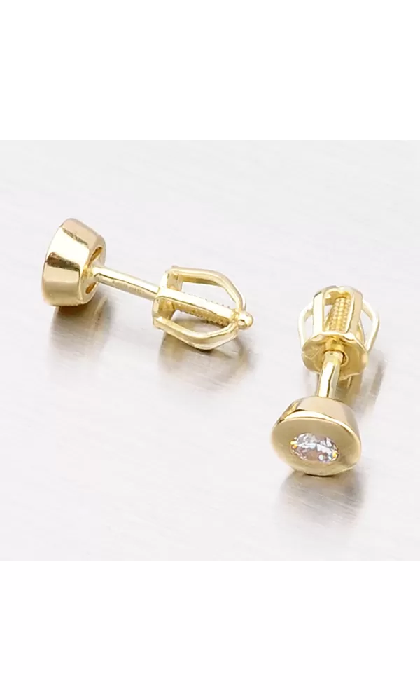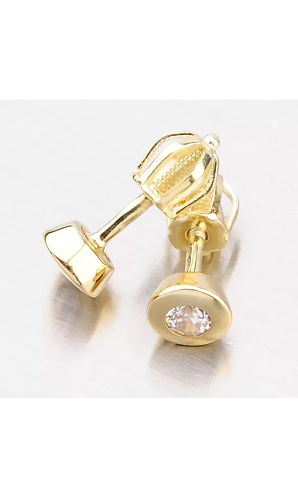 Jednoduché kamenné náušnice so zirkónom sú vyrobené zo žltej štrnástich karátových zlatých 585/1000 v lesklom povrchu. Zlaté náušnice sú pripevnené k hádaniek. Tieto zásahy určite vyniknú na ženách s kratšími vlasmi.