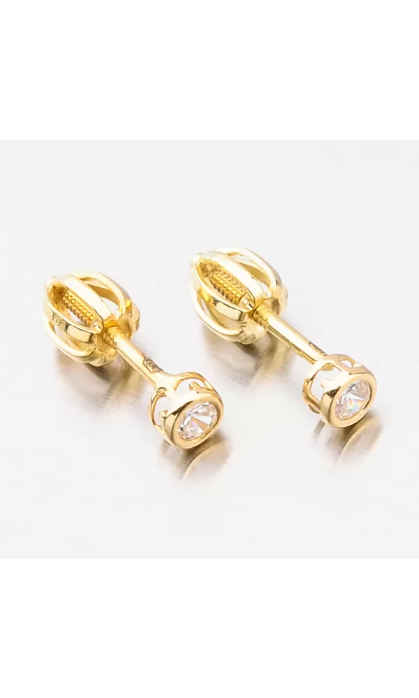 Ozdobte se decentním šperkem, který vás zjemní. Tyto náušnice pecky oplývají neuvěřitelné zářivým zirkonem v briliantovém brusu. Zirkon je precizně vsazen do zlata a dokonale odráží světlo. Náušnice se zapínají na šroubek.