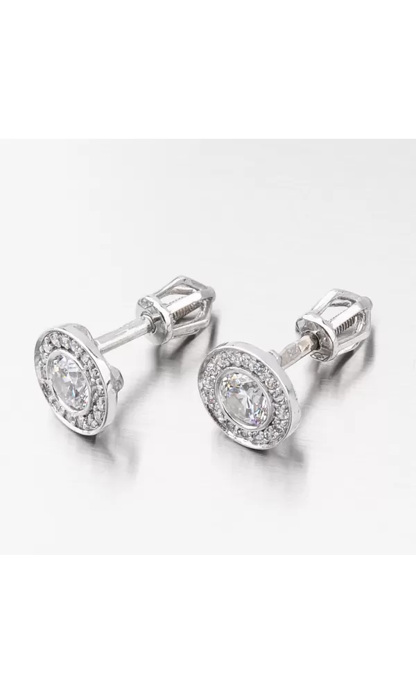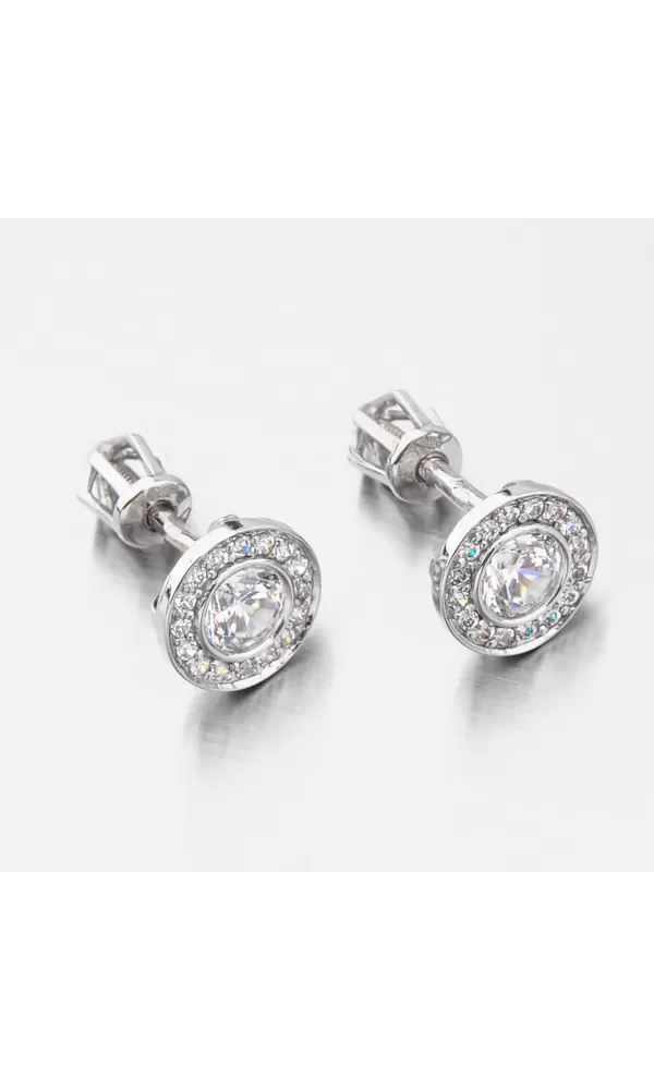 Překrásné náušnice pecky jsou v kulatém tvaru. Uprostřed kruhu je vsazen s maximální pečlivostí velký zirkon v briliantovém brusu a kolem něj jsou vsazeny menší neméně zářivé zirkony také v briliantovém brusu. Tento brus zirkonům dodává brilanci pravých diamantů. Pro maximální spolehlivost a bezpečí se náušnice zapínají na šroubek.