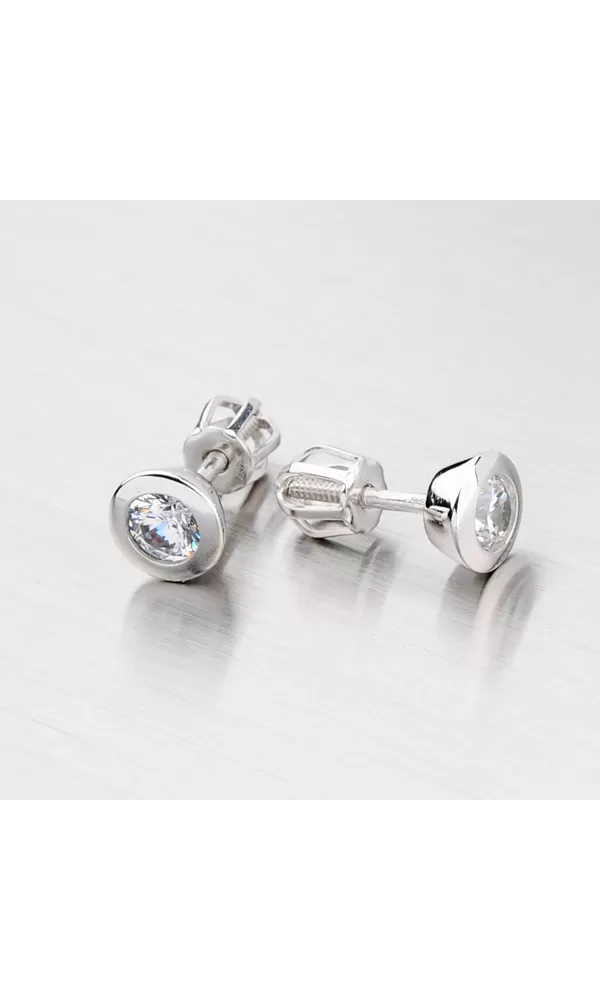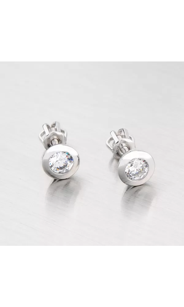 Jemné dámske náušnice s bielym zirkónom vyrobené z bieleho štrnásťkarátového zlata 585/1000 v lesklej povrchovej úprave. Náušnice sa zapínajú na skrutky.