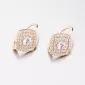 Luxusní dámské náušnice jsou zajímavé svou bohatě zdobenou ozdobou ve tvaru kosočtverce. Tato ozdoba je osázena zirkony v briliantovém brusu ve dvou… Celý popis