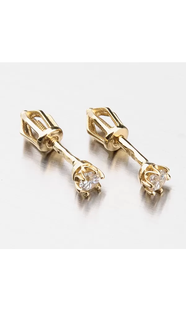 Dámske náušnice žlté zlato 585 zirkón na skrutke 42-31078