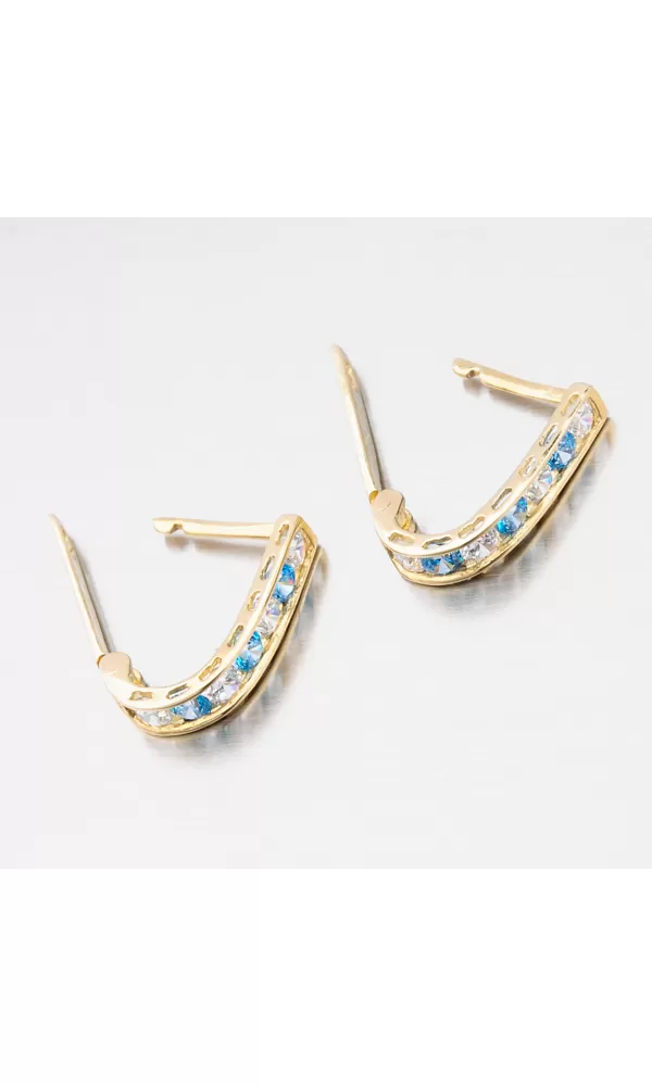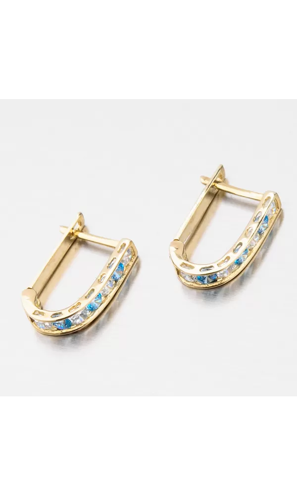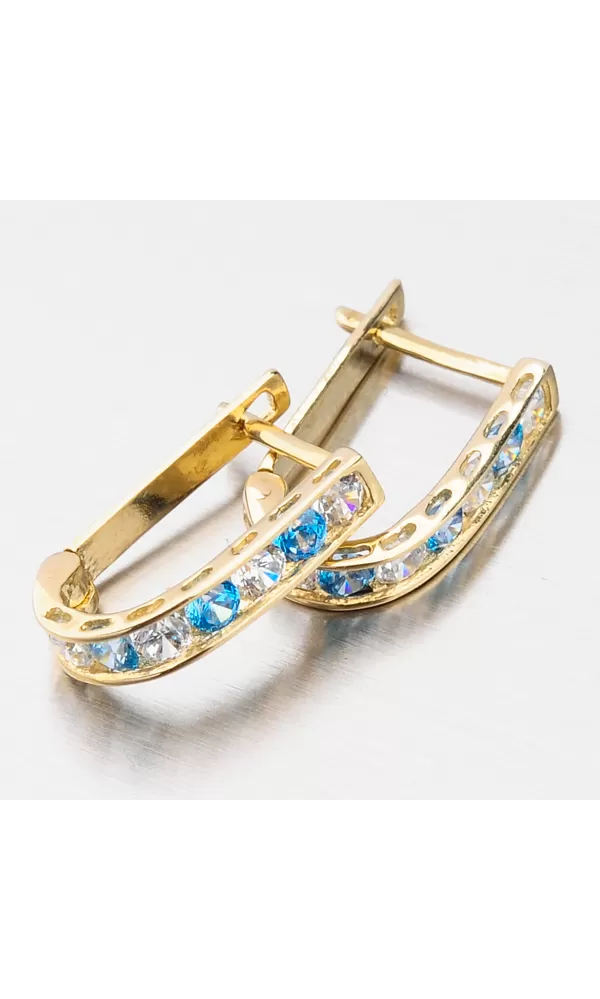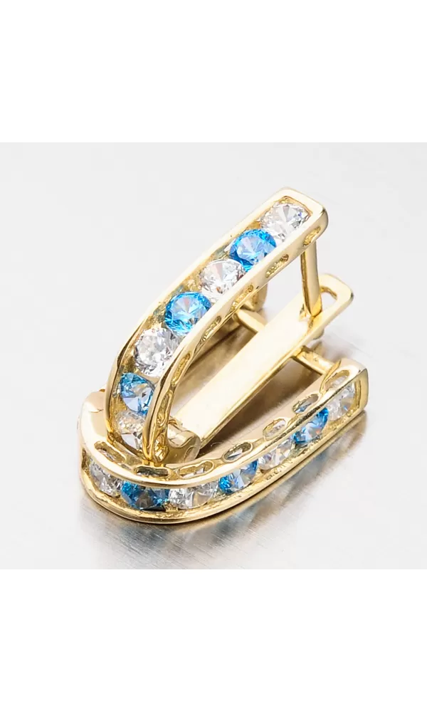 Dámske náušnice žlté zlato 585 zirkón modrý a biely 113P-121090M kamene 113P-121090-03