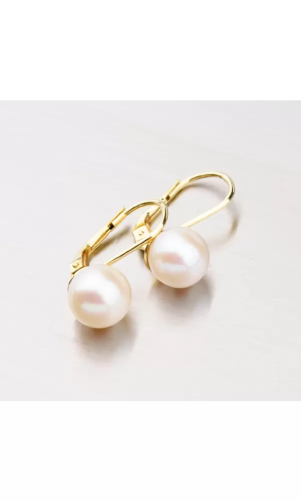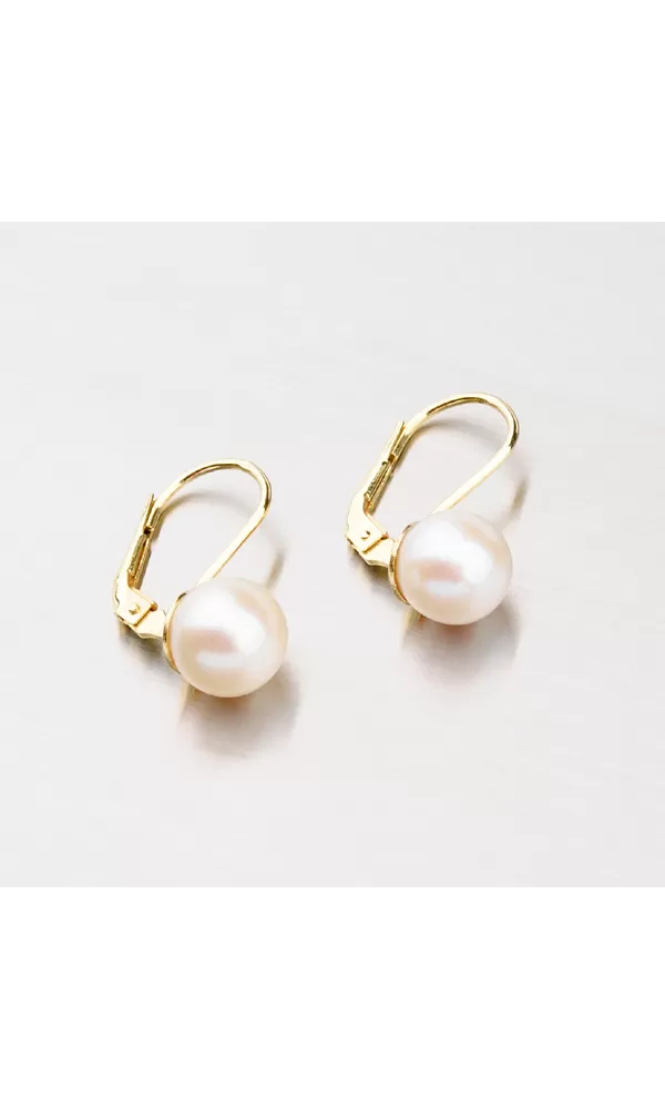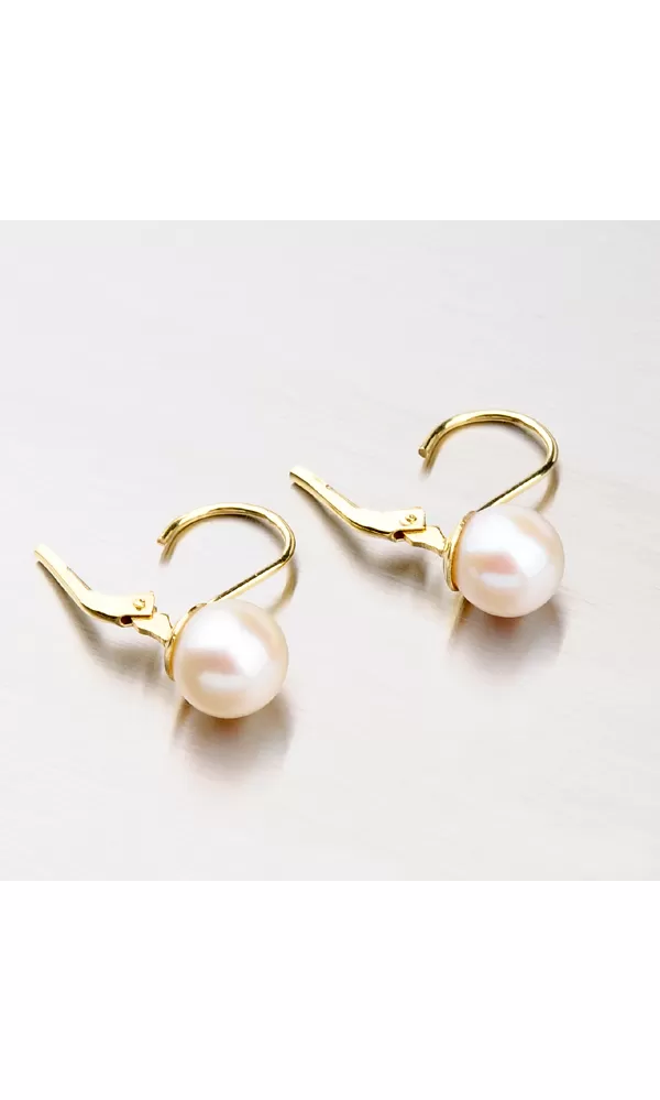Krásne dámske náušnice vyrobené zo žltého štrnásťkarátového zlata 585/1000 osadené dvoma syntetickými perlami v bielej farbe. Náušnice pristanú na každom dámskom uchu, perly sú predsa len znakom urodzenosti. Povrch zlata je v lesklej povrchovej úprave a náušnice sa zapínajú na bezpečné klapky.