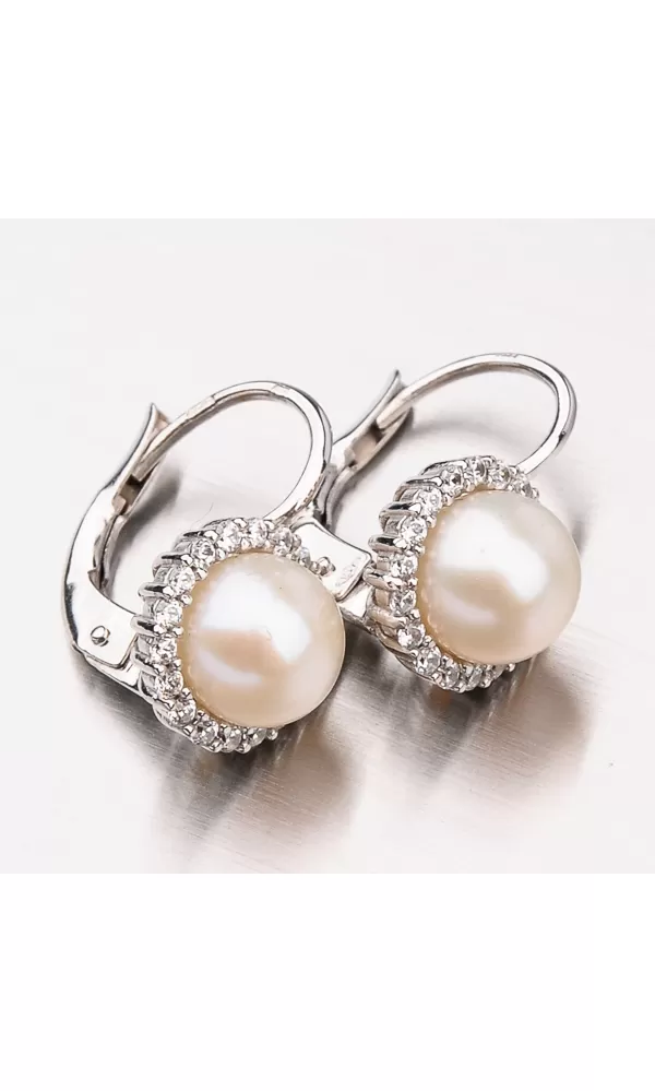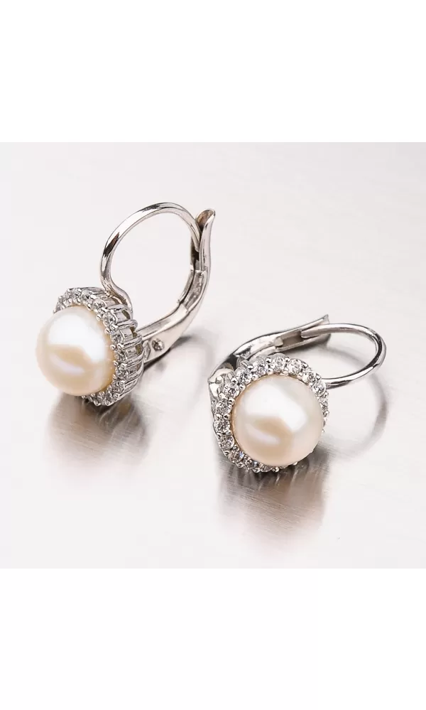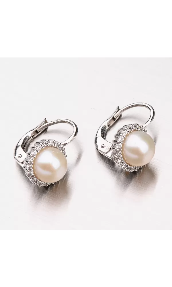 Náušnice s perlou a zirkónmi 12-378