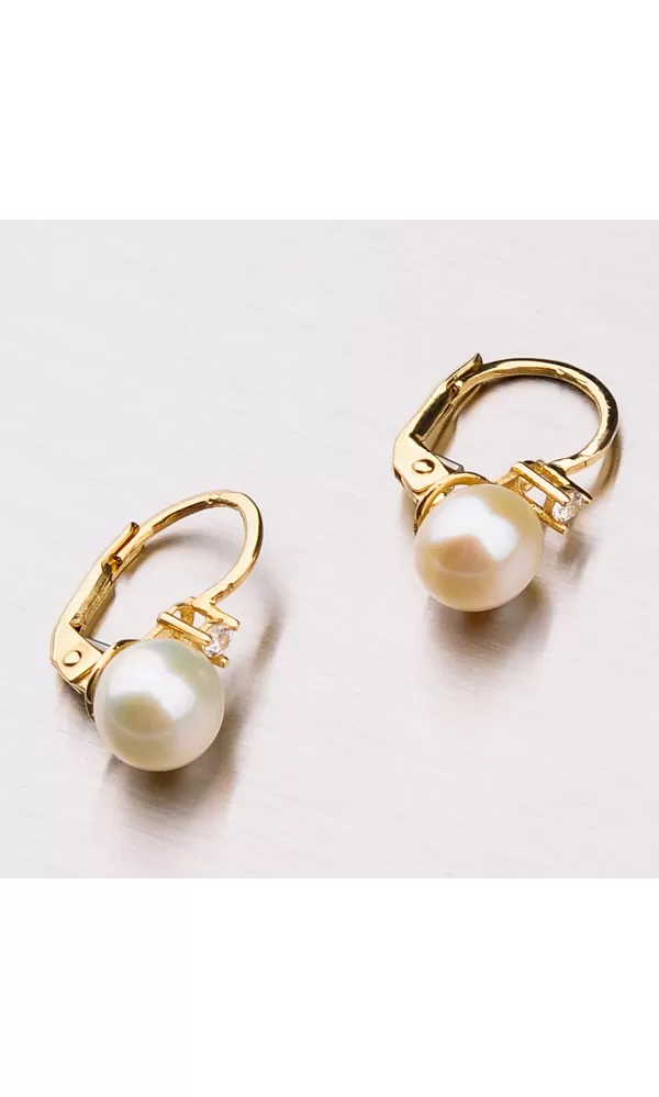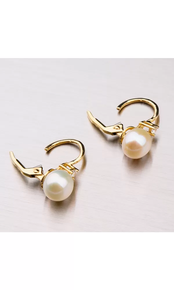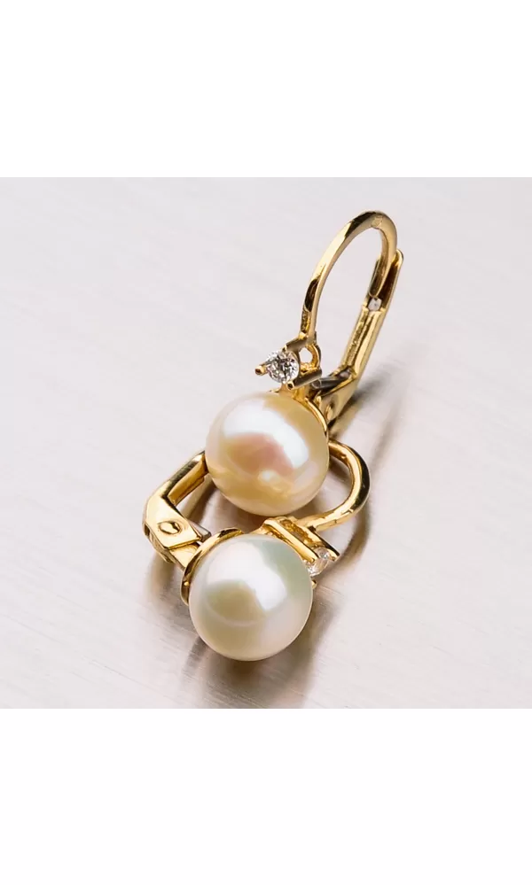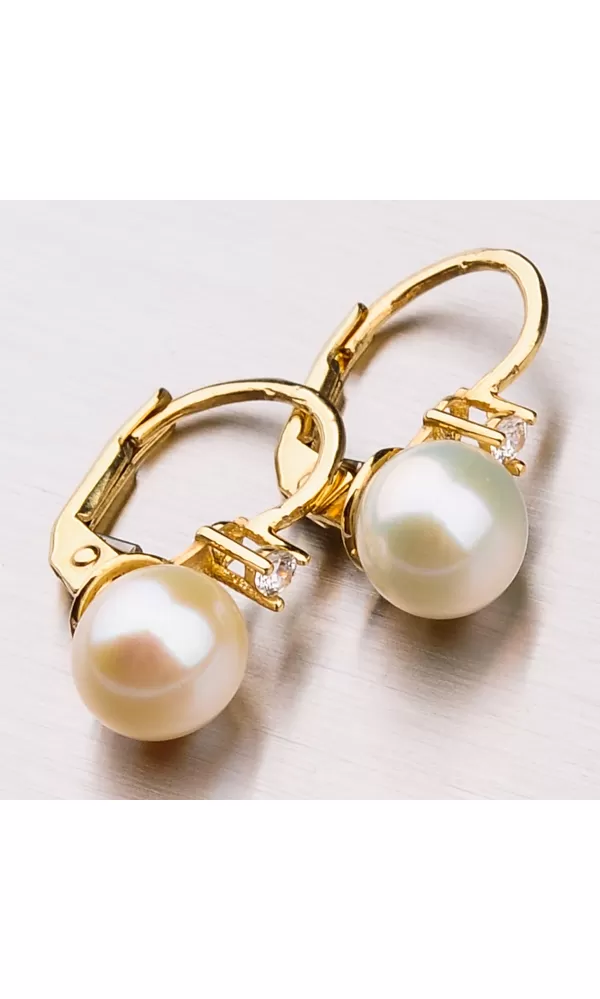 Perly pôsobia jemným, elegantným ale aj veľmi luxusným dojmom. Dajú sa ľahko skombinovať s inými šperkami a sú vhodné na bežné nosenie aj do spoločnosti. Tieto náušnice zdobí vedená perla a nad ňou je vsadený žiarivý zirkón precízne vybrúsený do briliantového brusu. Dámske náušnice sú vyrobené zo žltého štrnásťkarátového zlata 585/1000 v lesklej povrchovej úprave.