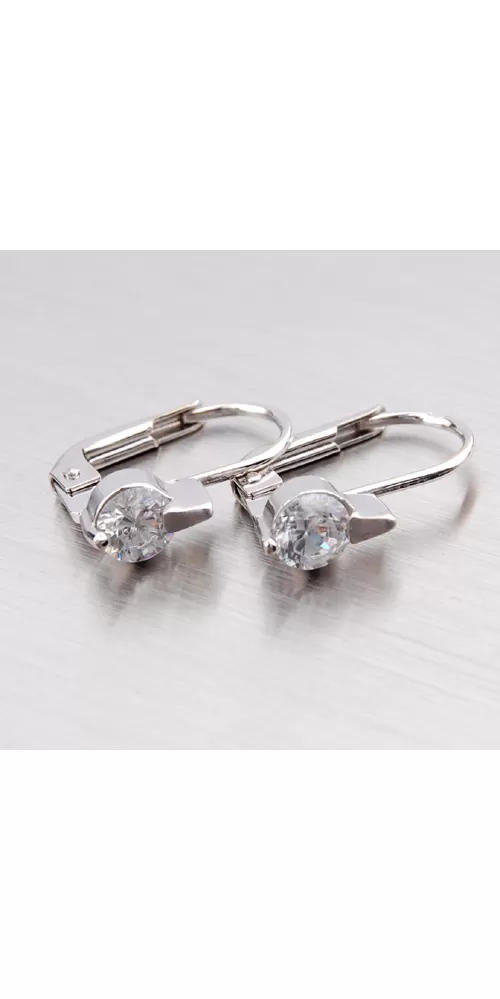 Dámske náušnice sú vyrobené z bieleho štrnásťkarátového zlata 585/1000 v lesklej povrchovej úprave s bielym zirkónom. Náušnice sa zapínajú na klapky.… Celý popis