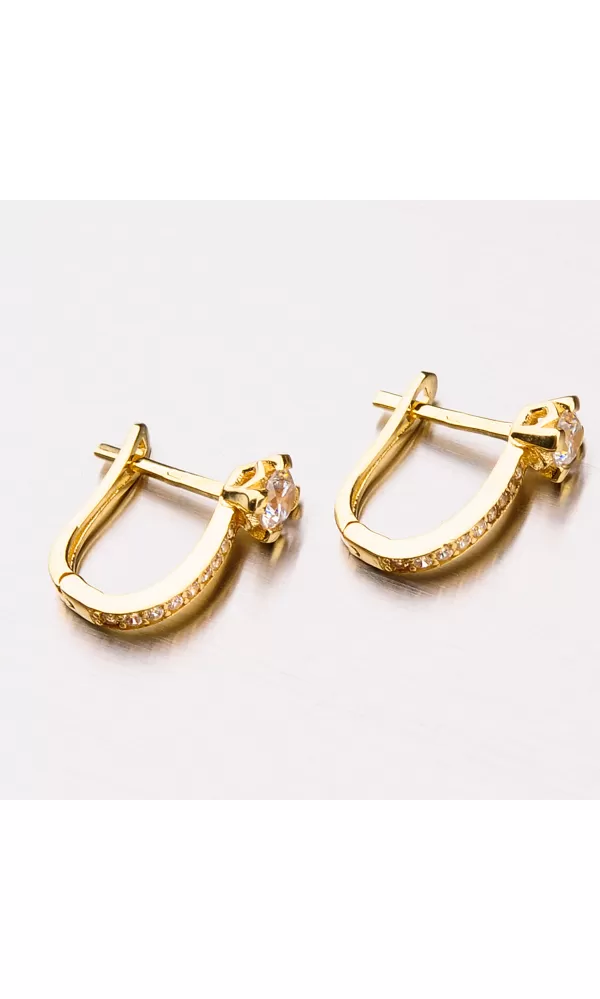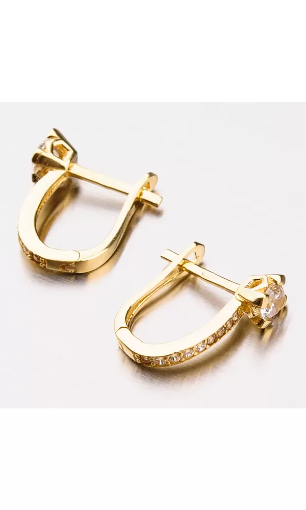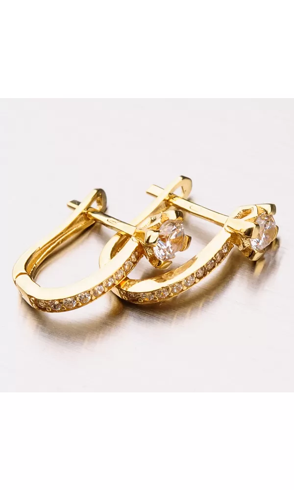 Vsaďte na tieto náušnice. Patrí medzi veľmi obľúbený model. Sú pohodlné a na uchu ich ani nepocítite. Dámske náušnice sú vyrobené zo žltého štrnásťkarátového zlata 585/1000 v lesklej povrchovej úprave. Dominantou náušníc je veľký zirkón, ktorý je vo vrchnej časti náušnice a uchytený je štyrmi krapnami. Ďalej sú náušnice zdobené menšími zirkónmi, ktoré sú vsadené v rade pod sebou.
