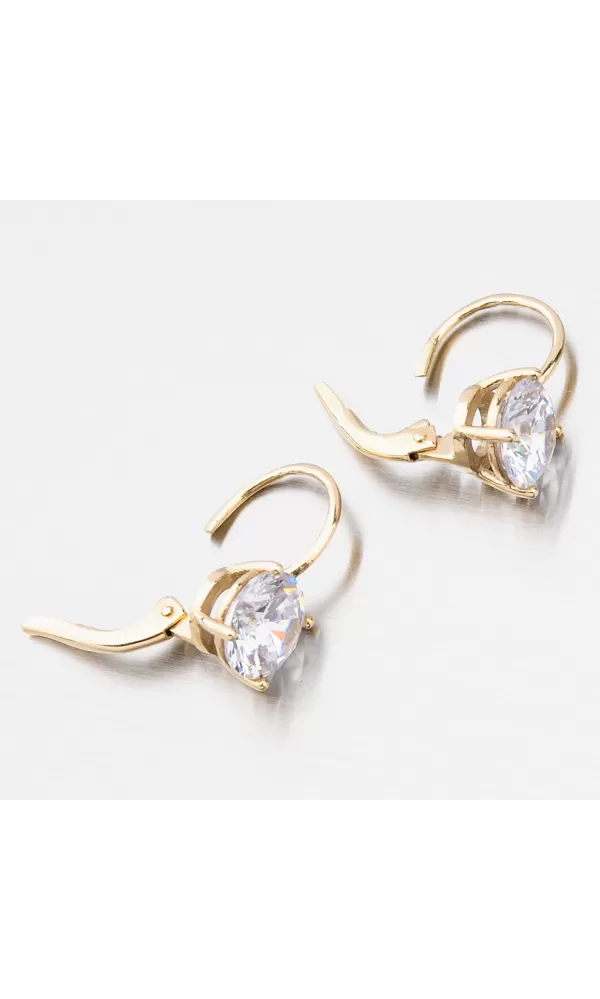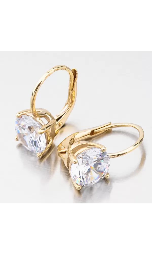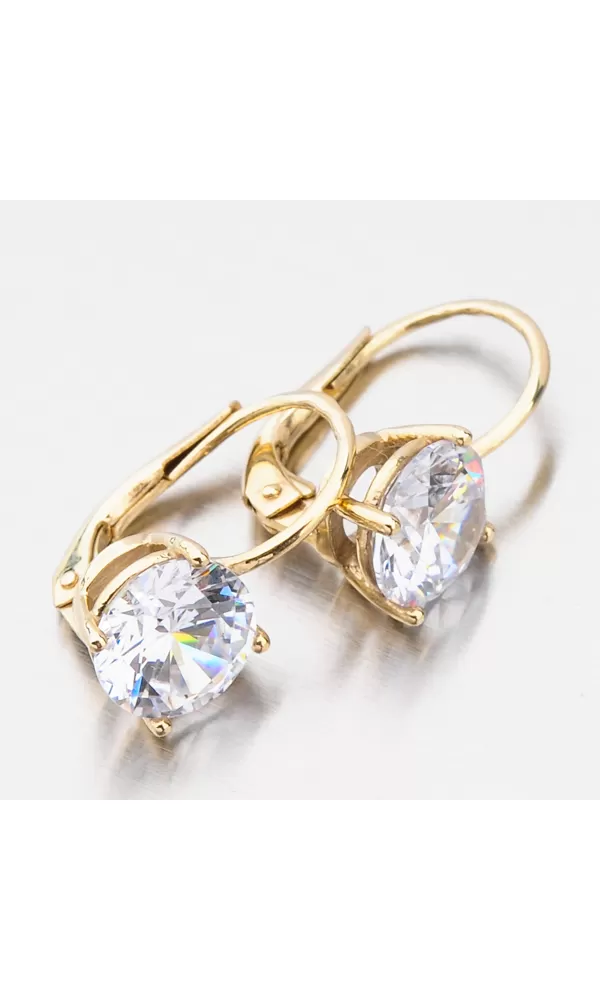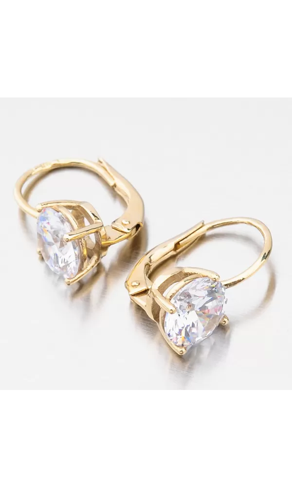 Zlaté náušnice v jednoduchém designu zdobí jeden velký zirkon v briliantovým brusu, který je precizně uchycen čtyřmi krapnami. Tento brus propůjčuje zirkonům brilanci pravých diamantů. Tento design náušnice se dokonale hodí pro každodenní nošení. Náušnice se zapínají na klapku.