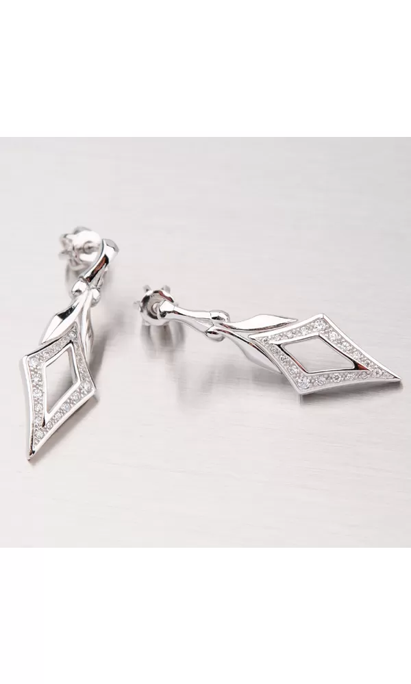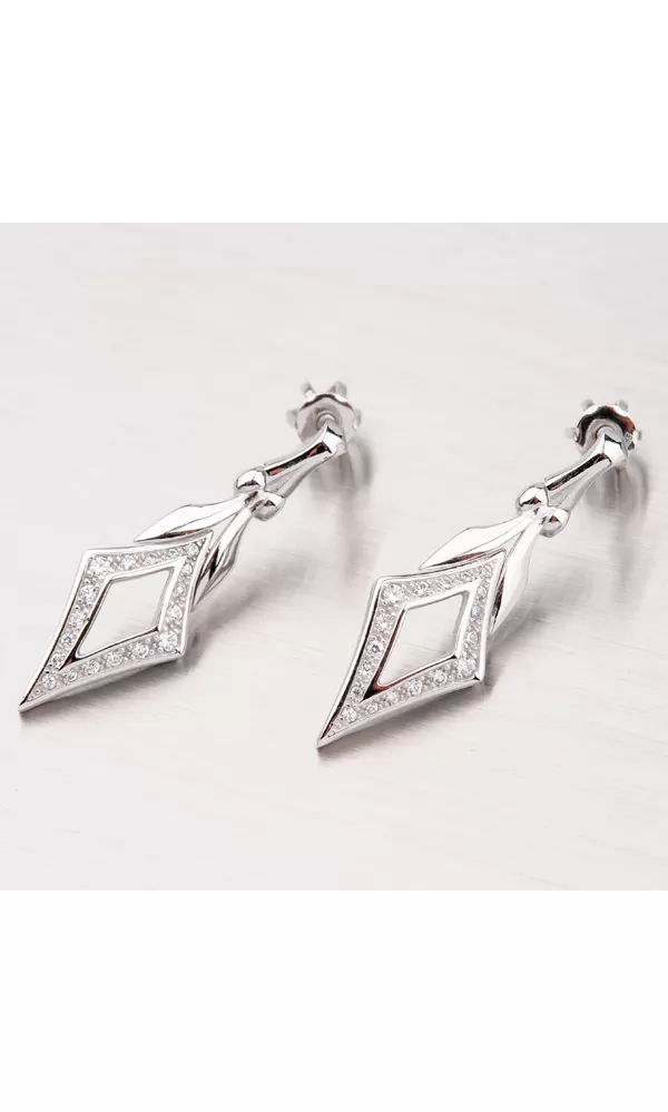 Náušnice sú vyrobené z bieleho štrnásťkarátového zlata 585/1000 v lesklej povrchovej úprave s drobnými zirkónmi, ktoré tieto náušnice krásne zjemňujú.