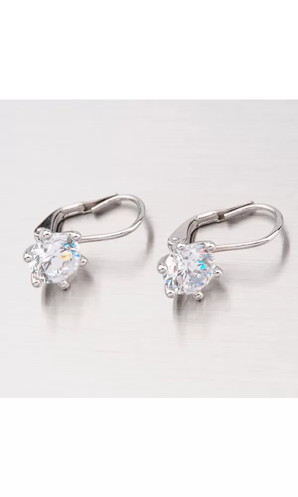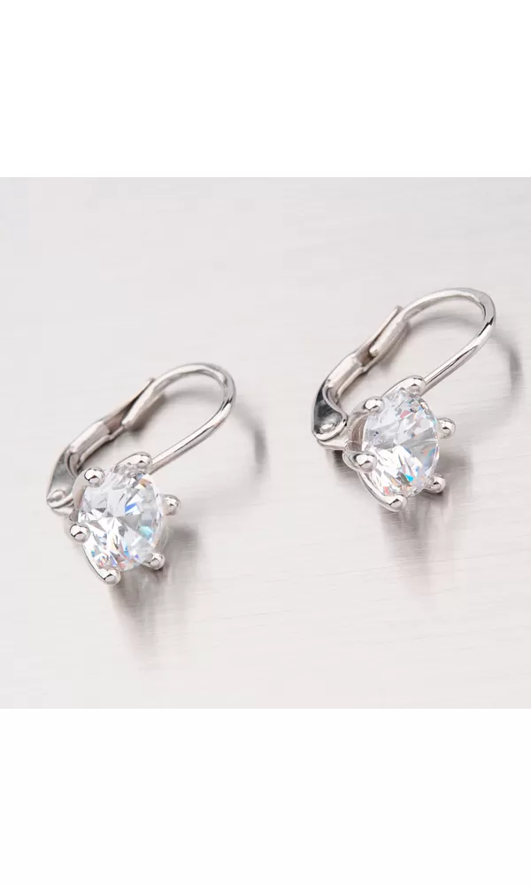 Náušnice sú vyrobené z bieleho štrnásťkarátového zlata 585/1000 v lesklej povrchovej úprave s jedným veľkým bielym zirkónom Náušnice majú zapínanie na klapku.