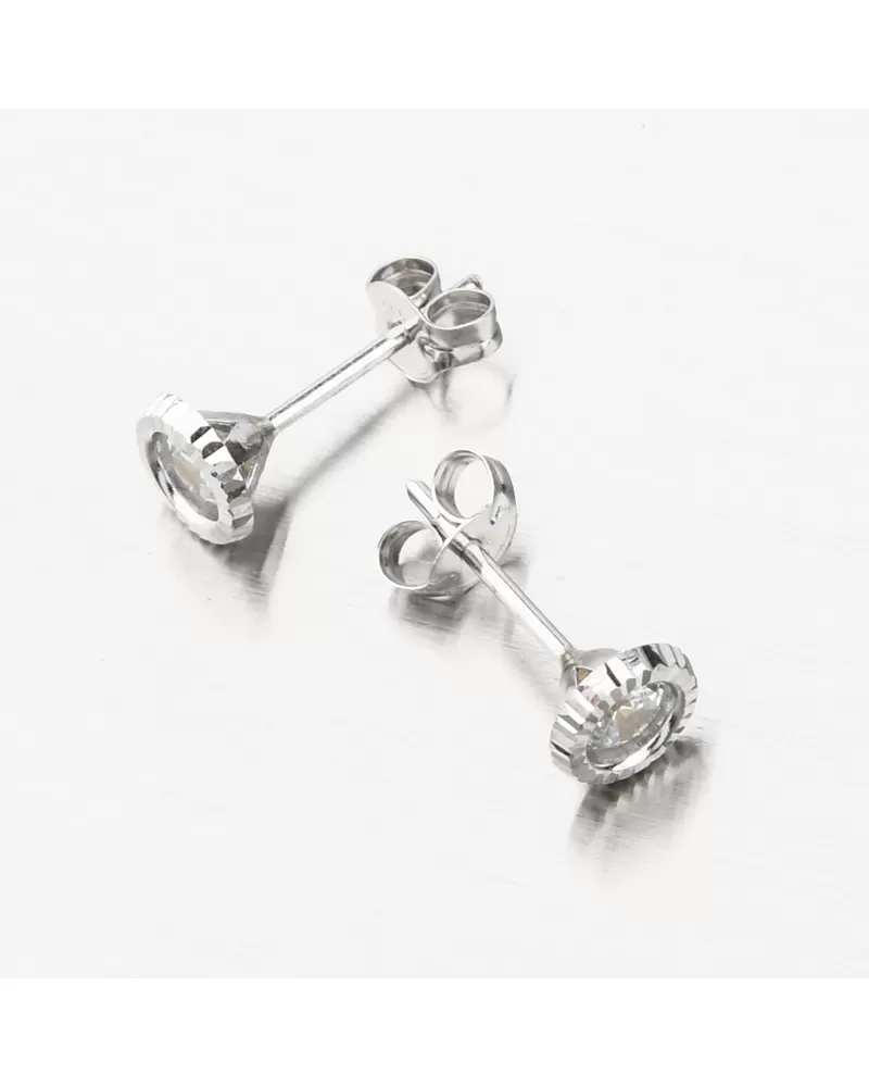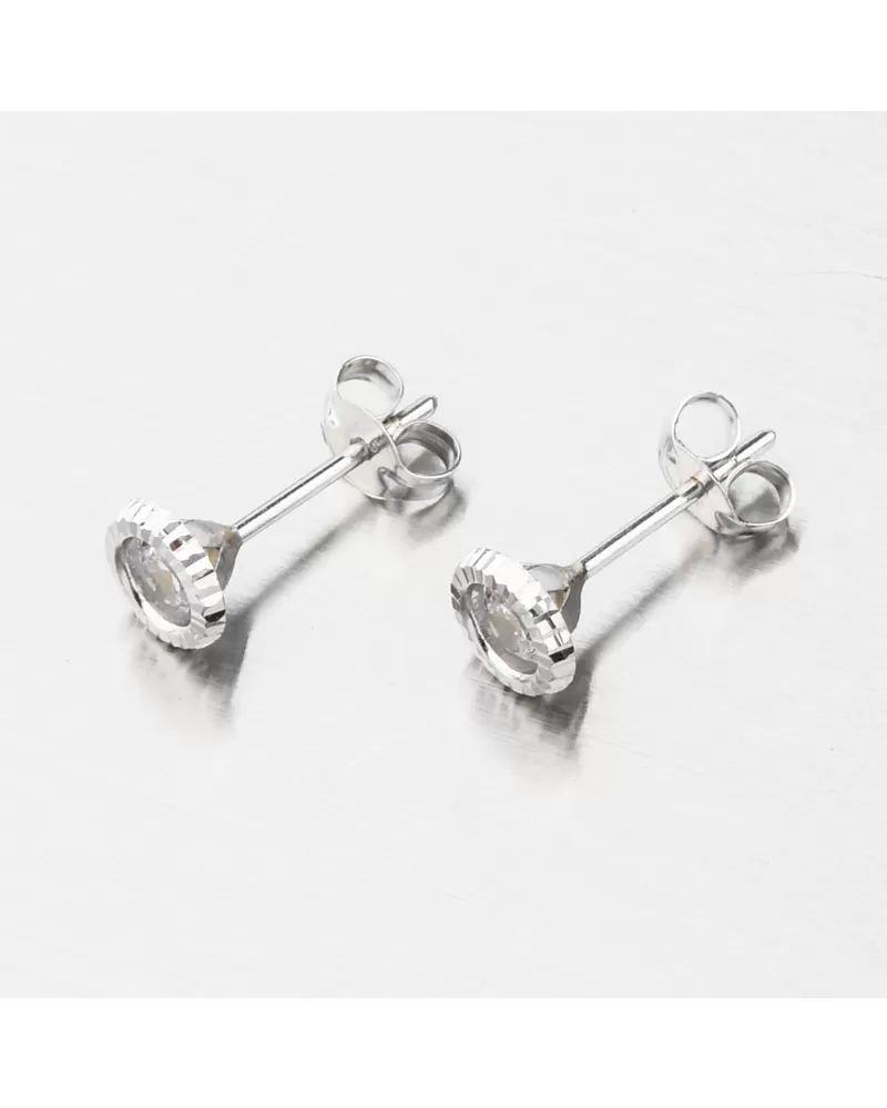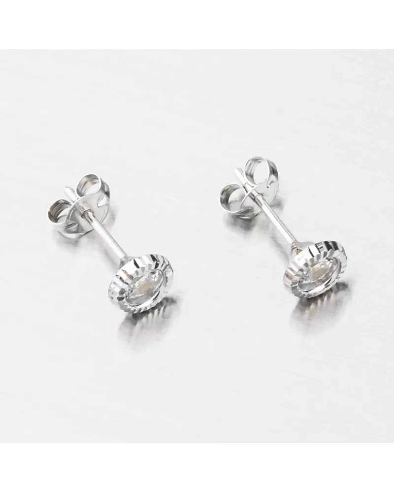 Jednoduché a decentní zlaté náušnice pecky. Náušnice zdobí třpytivý zirkon o velikosti 3,75 mm. Zirkon je briliantového brusu, který zajišťuje maximální brilanci vybroušených facet, dokonale odráží světlo a neuvěřitelně září z každého úhlu pohledu. Okolo zirkonu je bílé zlato a v něm jsou jemné drážky.