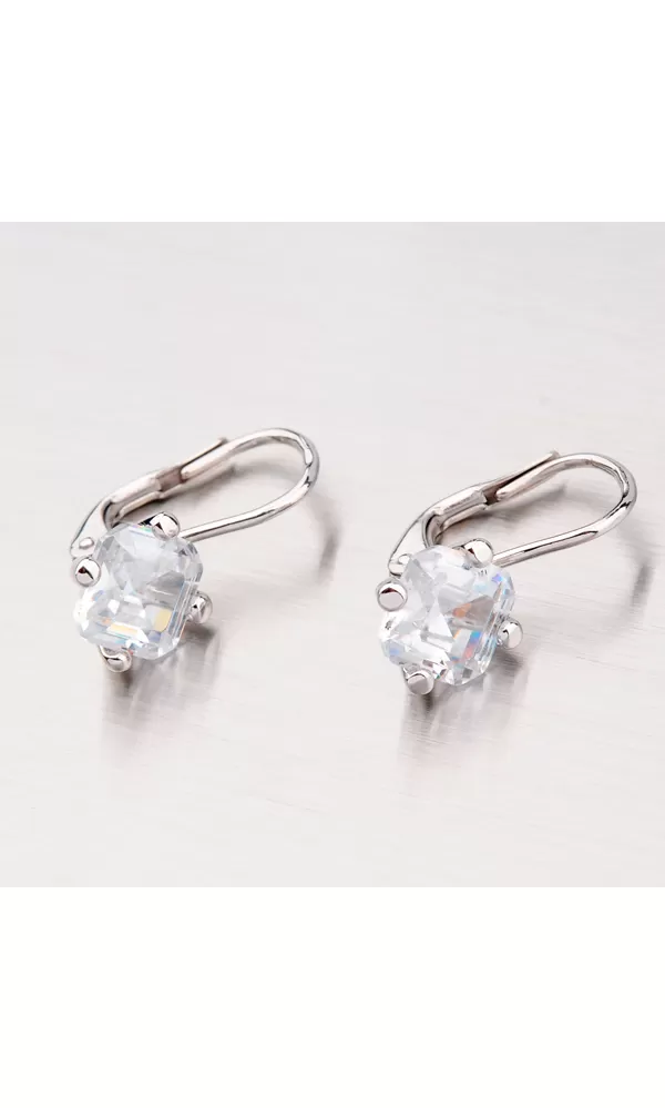 Náušnice sú vyrobené z bieleho štrnásťkarátového zlata 585/1000 v lesklej povrchovej úprave s jedným väčším hranatým bielym zirkónom. Náušnice majú zapínanie na pasívny patent.