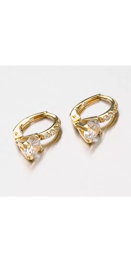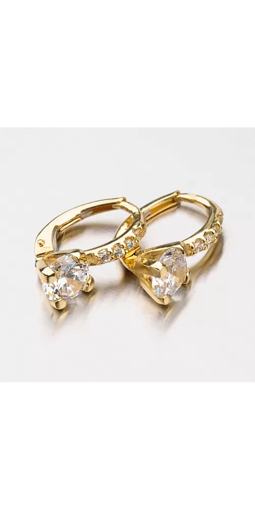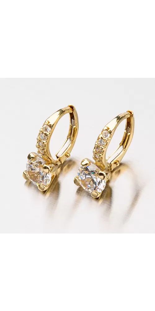 Neprehliadnuteľný model vás uchváti. Sú zdobené veľkým zirkónom v briliantovom bruse a menšími zirkónmi, ktoré sú vsadené v rade nad veľkým zirkónom. Náušnice sú vyrobené zo žltého štrnásťkarátového zlata 585/1000 v lesklej povrchovej úprave a zapínajú sa na klapku. Tento model náušníc využijete ako v spoločnosti, tak aj bežné nosenie. Dokonale doplní váš outfit a navyše budete neprehliadnuteľná.