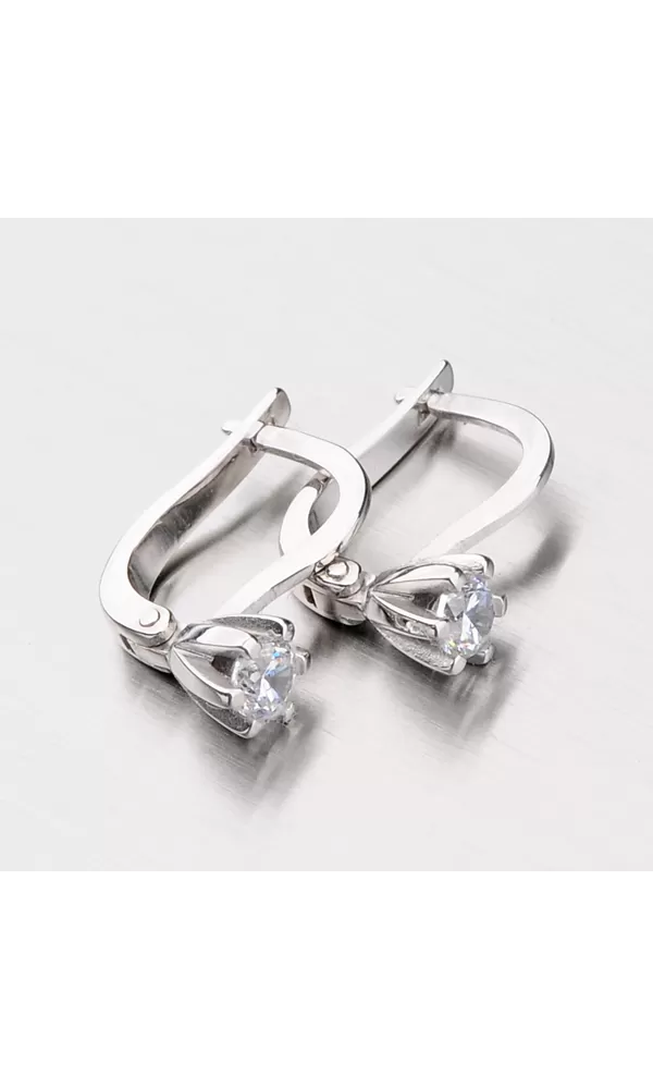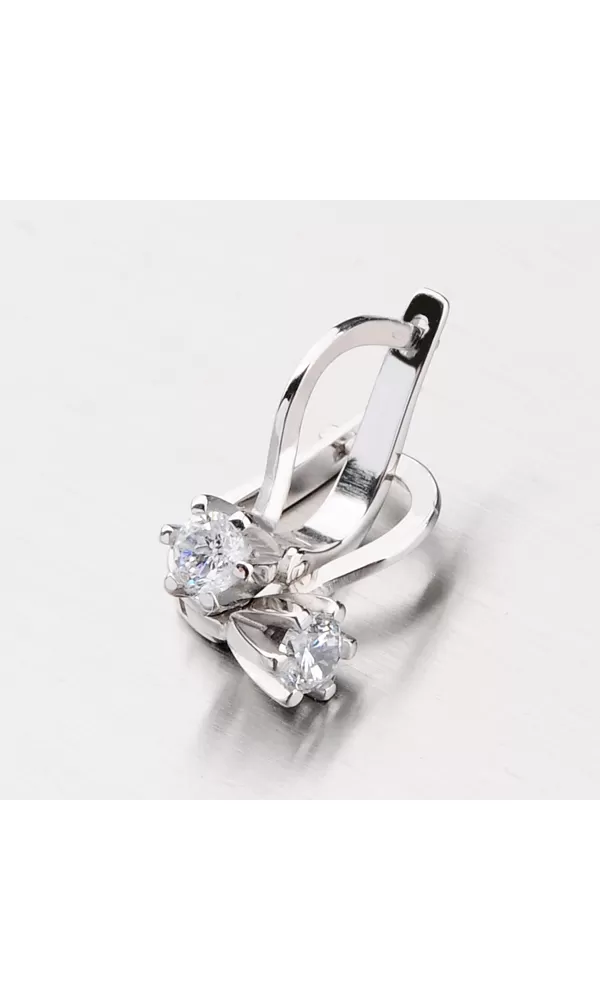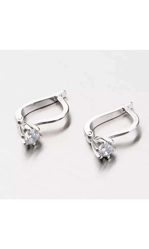 Jednoduché náušnice vyrobené z bieleho štrnástich karátového zlata s rýdzosťou 585/1000 sú osadené žiarivými zirkónmi v bielej farbe. Náušnice majú lesklý povrch a zapínajú sa na pasívny patent. Náušnice zaručene potešia každú slečnu.