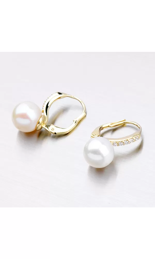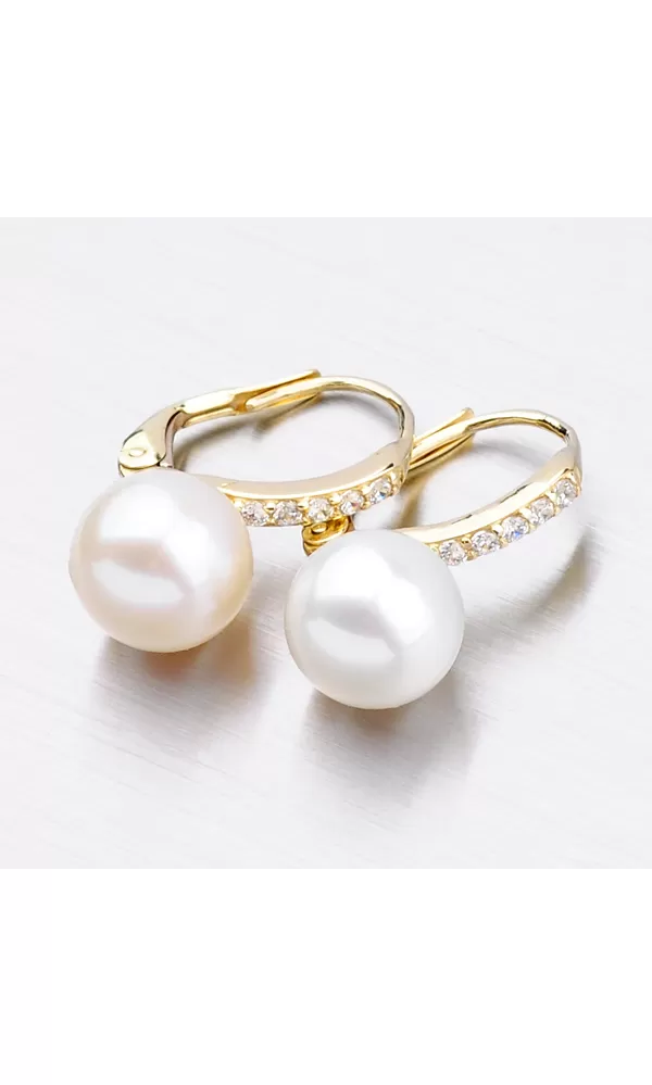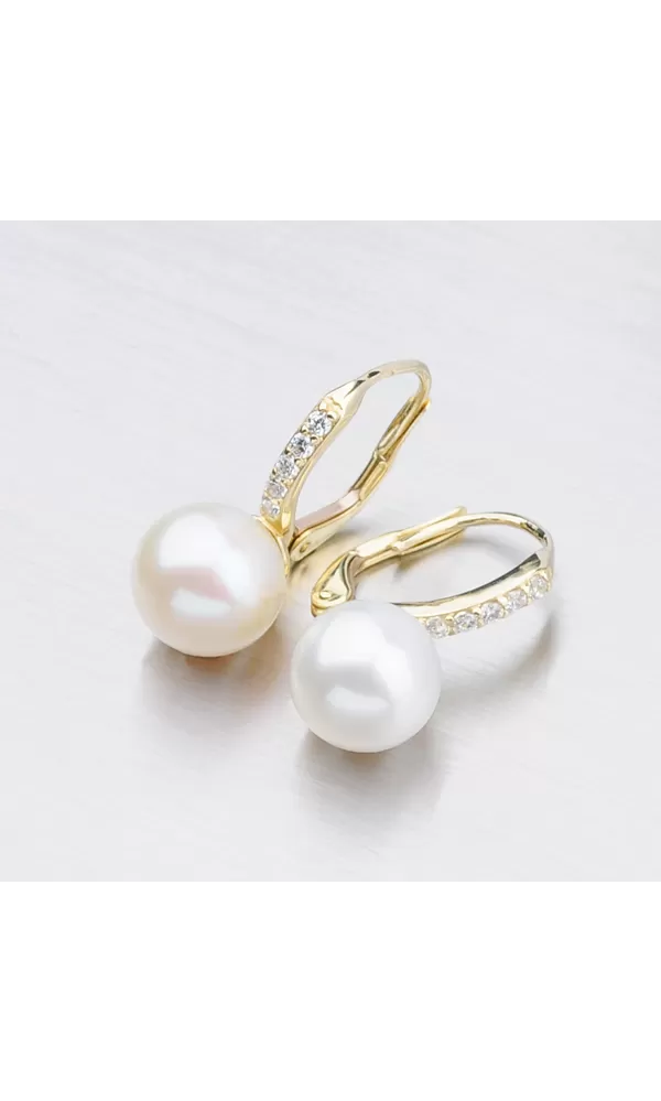 Perlové náušnice sú vyrobené zo žltého štrnásťkarátového zlata 585/1000 v lesklej povrchovej úprave. Náušnice sú navyše osadené žiarivými zirkónmi a bielou perlou. Podľa systému ohodnotenia perál je kvalita tejto sladkovodnej perly AAA – jedná sa najvyššiu kvalitu perly. Povrch má veľmi vysoký lesk a minimálne 95% povrchu perly je bez akéhokoľvek typu poškodenia. Elegantné perlové náušnice si určite obľúbite, pretože sú vhodné na každodenné nosenie aj do spoločnosti. Perlové šperky sú symbolom urodzenosti a elegancie.