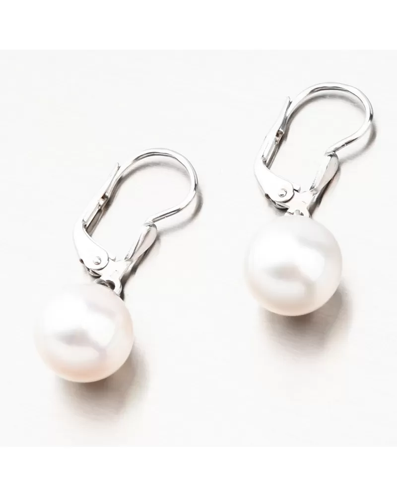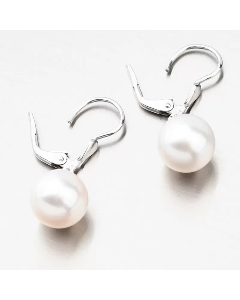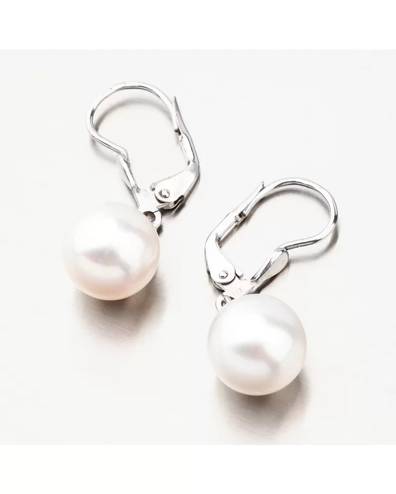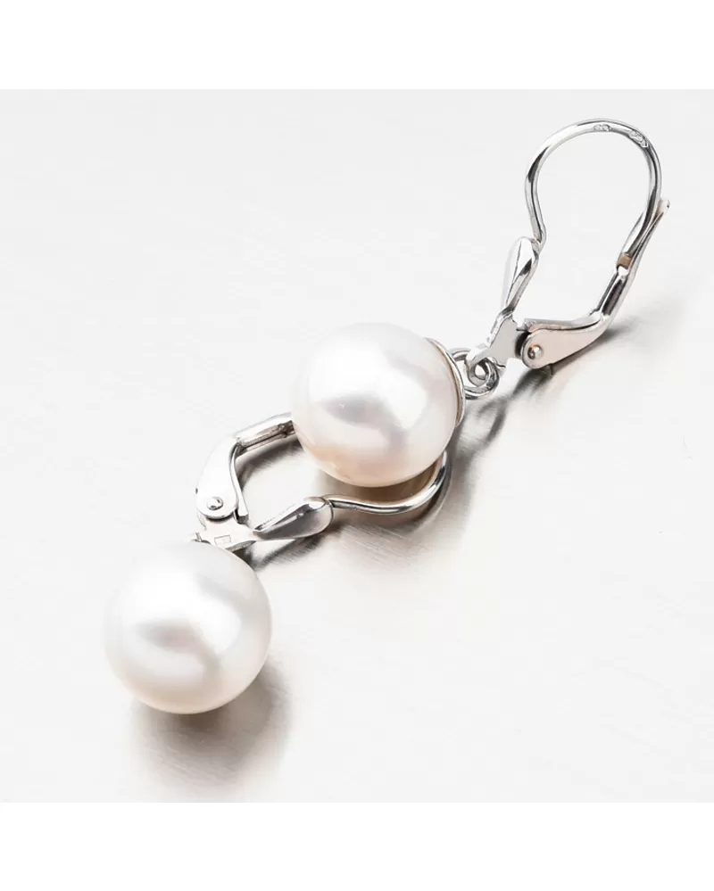 Výrazné zlaté náušnice ozdobené prírodnou sladkovodnou perlou freshwater v bielej farbe. Náušnice majú perlu zavesenú na krúžku a pri pohybe sa pohybuje a žiaria na všetky strany. Biele perly symbolizujú čistotu, nevinnosť a nový začiatok. Sú symbolom luxusu a zmyselného tajomna, ktoré v sebe každá žena skrýva. Šperky s perlou vám nesmú chýbať vo vašej šperkovnici.