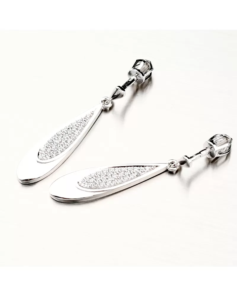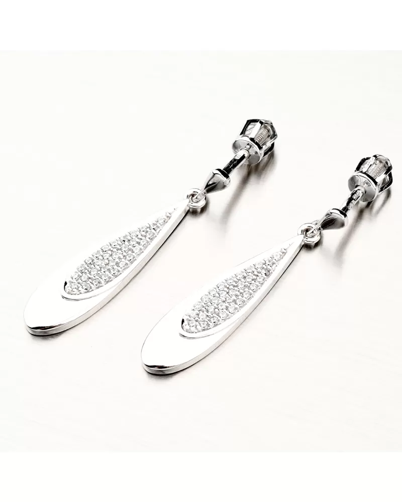 Nádherné visiace zlaté náušnice, ktoré zaujmú precíznym prevedením a kvalitným spracovaním. Náušnice majú visiacu ozdobu v tvare kvapky, kde spodná časť je vy vysokom lesku a potom je menšia slza osadená žiarivými zirkónmi. Zirkóny sú briliantového brusu, ktorý prepožičiava zirkónom brilanciu pravých diamantov, ktorý podporí aj konštrukcia náušníc. Konštrukcia je navrhnutá tak, aby dokonale prestupovalo svetlo okolo zirkónov.