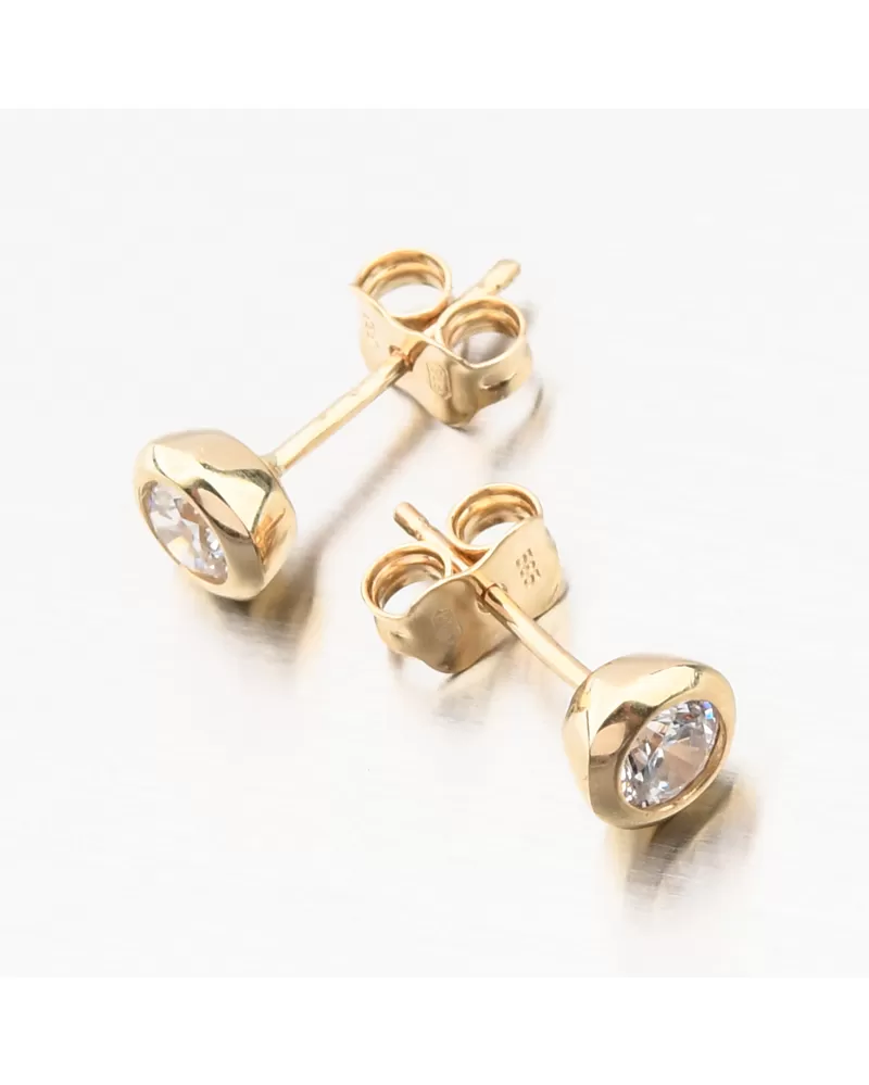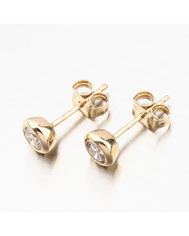 Decentné náušnice kôstky zo žltého zlata Vás rozžiaria vďaka prvotriednemu zirkónu v briliantovom bruse. Briliantový brus zaisťuje maximálnu brilanciu vybrúsených facet, dokonale odráža svetlo a neuveriteľne žiari z každého uhla pohľadu. Náušnice sú opatrené zapínaním na puzetu, ktoré milujú ženy, ktoré nerady v náušniciach spia a tiež ktoré rady náušnice často menia.