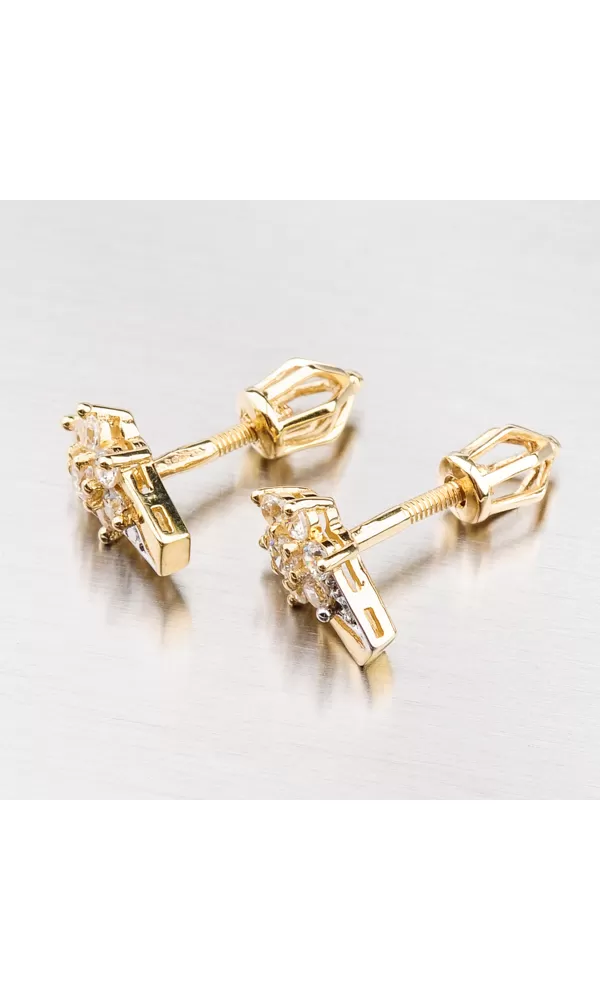 Dámské náušnice jsou vyrobeny ze žlutého čtrnáctikarátového zlata 585/1000 v lesklé povrchové úpravě. Pro dokonalý pocit bezpečí se náušnice zapínají na šroubek. Tento šperk byl zkontrolován puncovním úřadem, který ověřil jeho kvalitu a označil státním puncem pro danou ryzost.