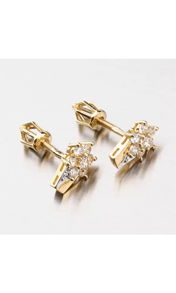Jiskřivé kameny ve zlatém objetí vytvořili náušnice, které vyniknou na vašich uší. Náušnice pecky v dekoru květiny jsou skvělým doplňkem v jarních a letních dnech. Zirkony jsou broušeny do luxusního briliantového brusu, který zaručí dokonalý odraz světla.