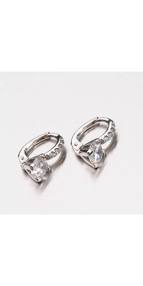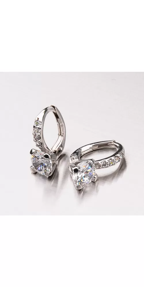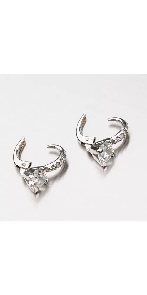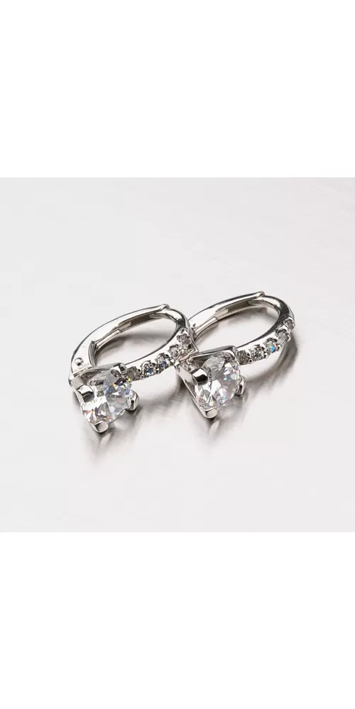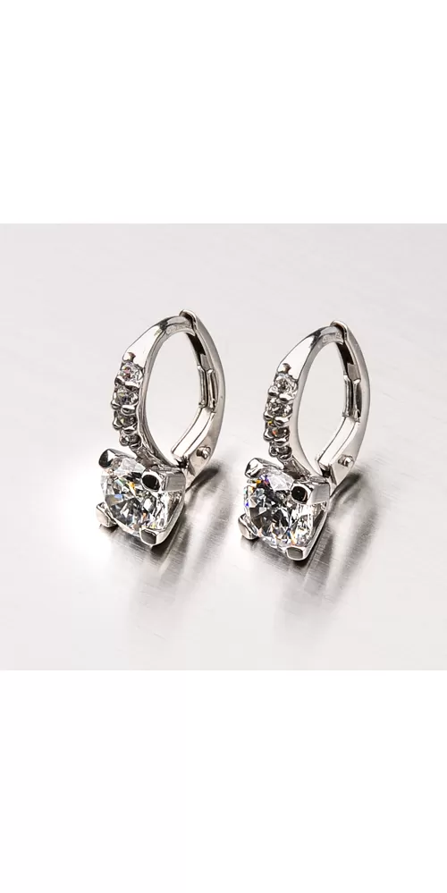 Žiarivé náušnice sú vyrobené z bieleho štrnásťkarátového zlata 585/1000 v lesklej povrchovej úprave a zapínajú sa na klapku. Dominantou náušnice je zirkón v briliantovom bruse a chytený je štyrmi masívnymi krapnami. Od hlavného zirkónu sú vsadené štyri zirkóny.